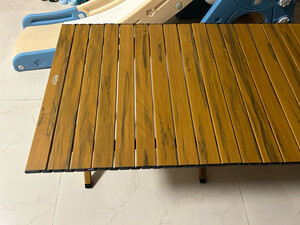 活动时购入的桌子,收到货时真的眼前一亮!铝合金材质 很轻便,收纳方便 用起来也很好,颜色条纹都是想要的!期待天气好 露营走起!