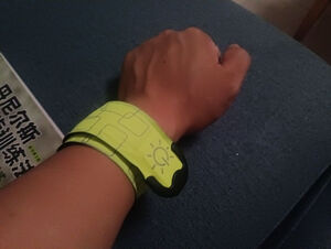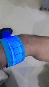 这个也是得给好评 灯光特别的两眼 也宽 设计感觉很好 直接缠在手臂上的 就是唯一的有一点 缠在胳膊上 也确实是紧的慌 比较勒 这时间长了肯定不行的