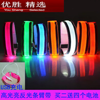 瑞尔士跑步手臂灯绑裤脚充电灯警示信号反光户外运动夜跑手环骑行束裤带 充电款-红色