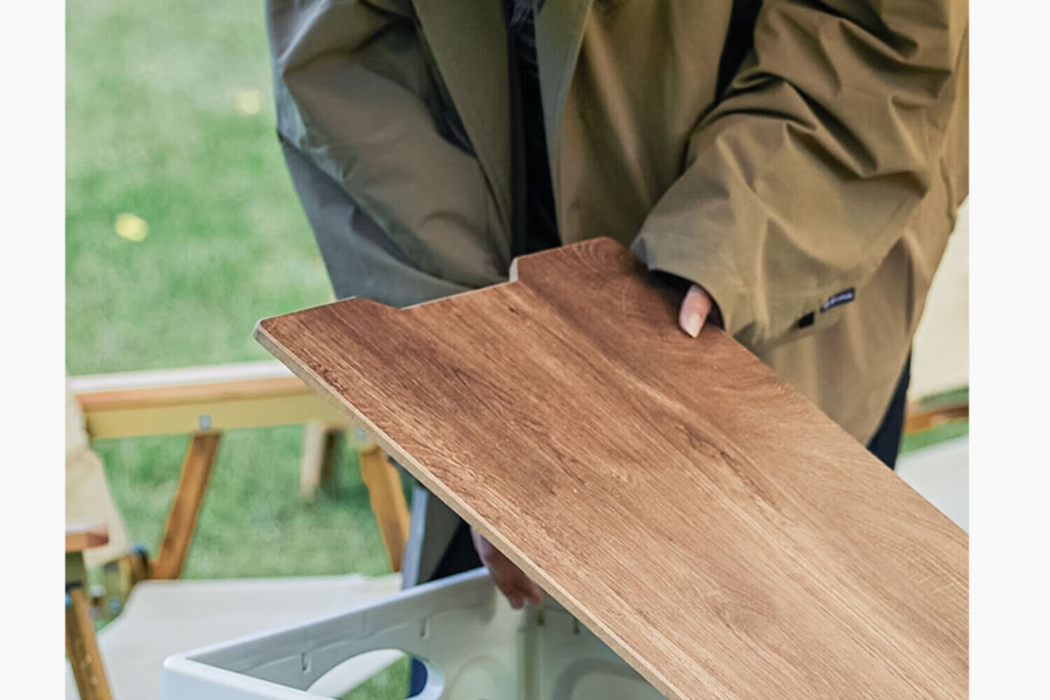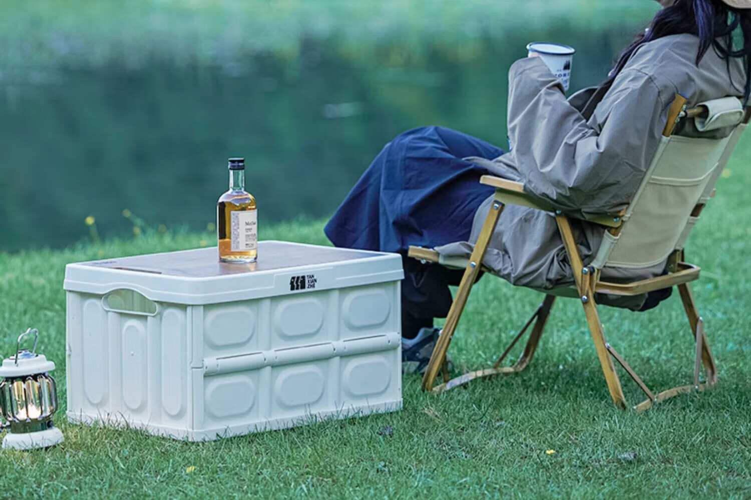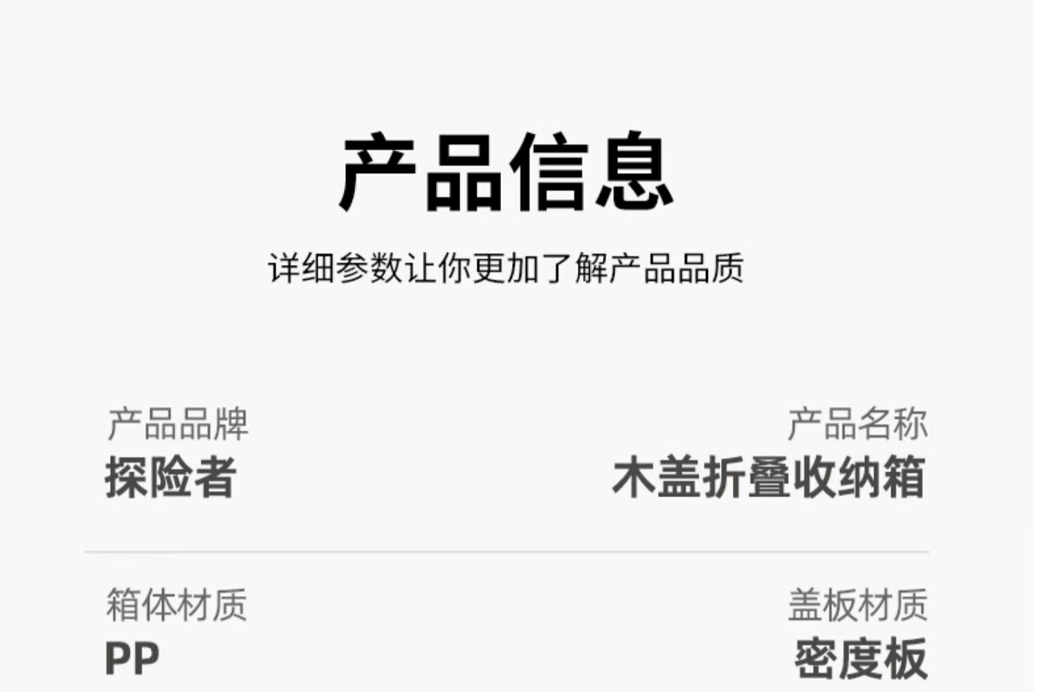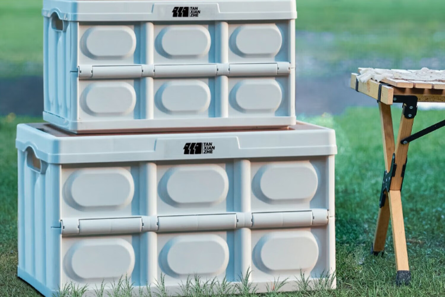 折叠收纳箱收起来很小 打开却很能装;平时露营可以用也可以放后备箱 在家里当储存箱同样不错,但木板是高密度板 要注意防水保护!