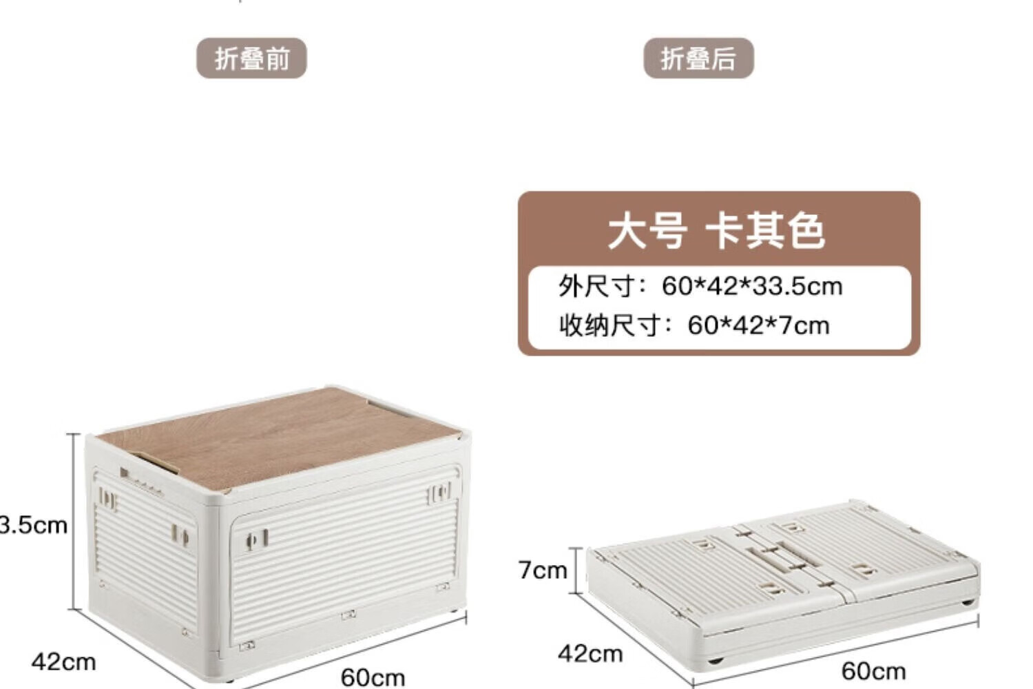 原始人户外露营折叠箱收纳储物置物箱子整理野营用品便携式折叠桌 可侧开卡其35L【赠木质桌板】