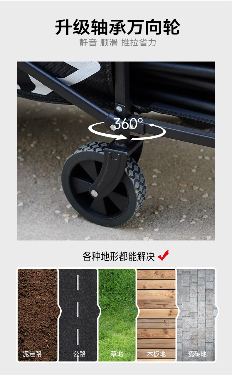 产品很实用,折叠方便,推着省力,性价比高,户外活动必备。