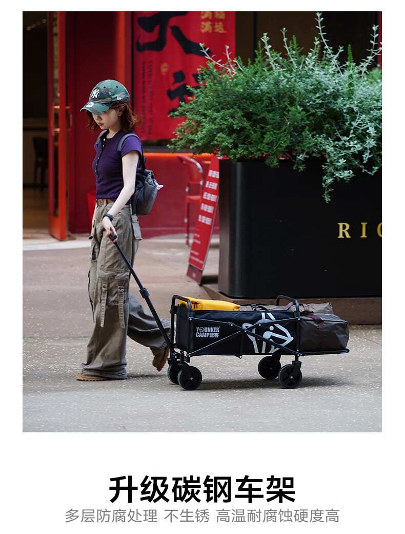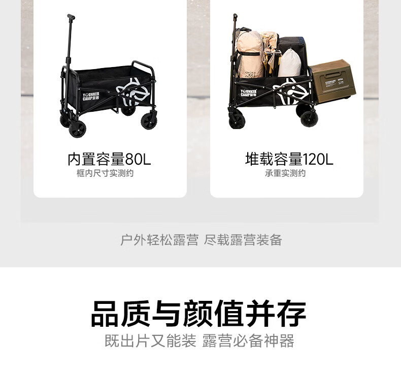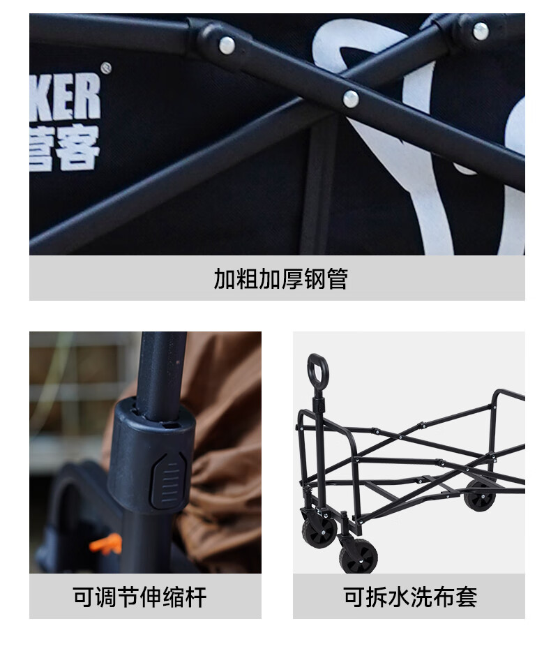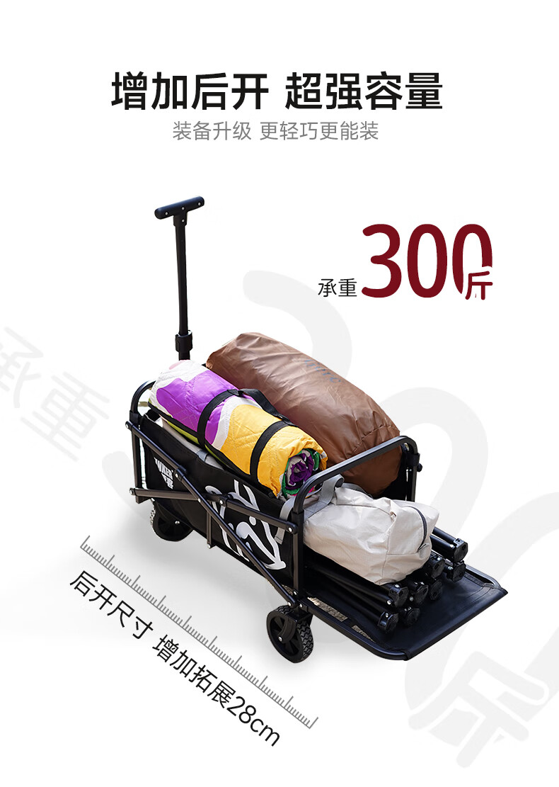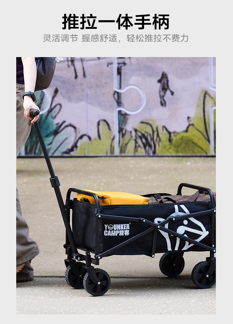 这款营地车真的挺实用的,后开取物设计特别方便,不用再翻来翻去找东西了。轮子很顺滑,拉起来不费劲,收纳也简单,折叠后不占地方。带娃出去野餐或者露营,装东西轻松多了,质量也不错,用了几次都没问题,性价比很高。