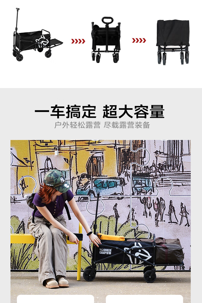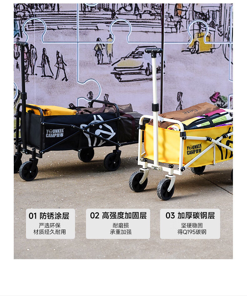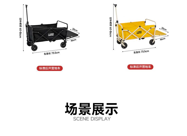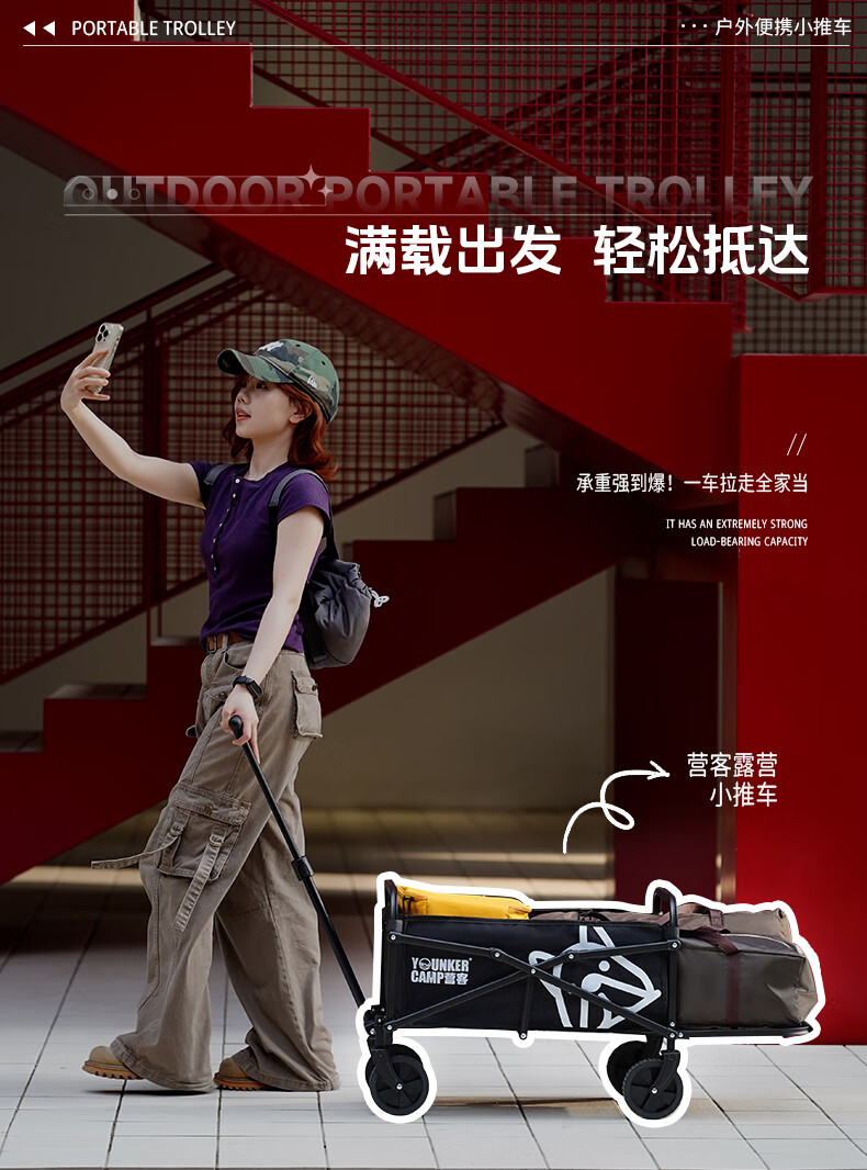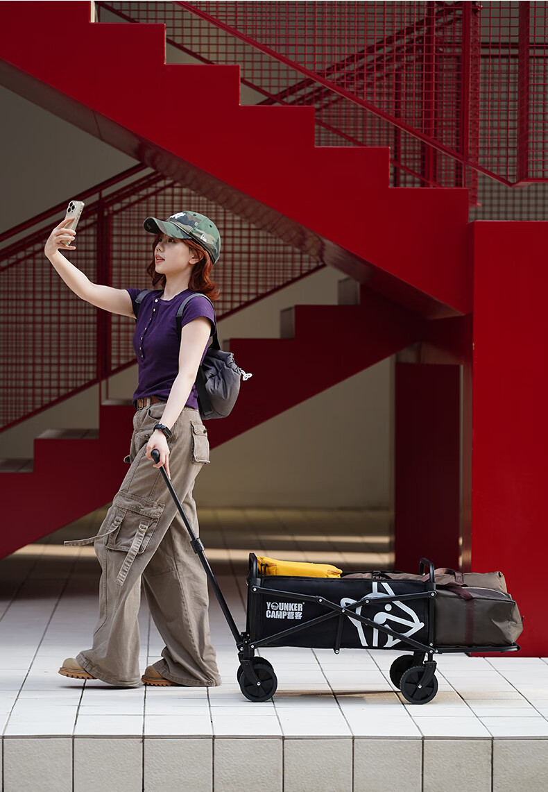 这款营地车真的挺实用的,后开取物设计特别方便,不用再翻来翻去找东西了。轮子很顺滑,拉起来不费劲,收纳也简单,折叠后不占地方。带娃出去野餐或者露营,装东西轻松多了,质量也不错,用了几次都没问题,性价比很高。