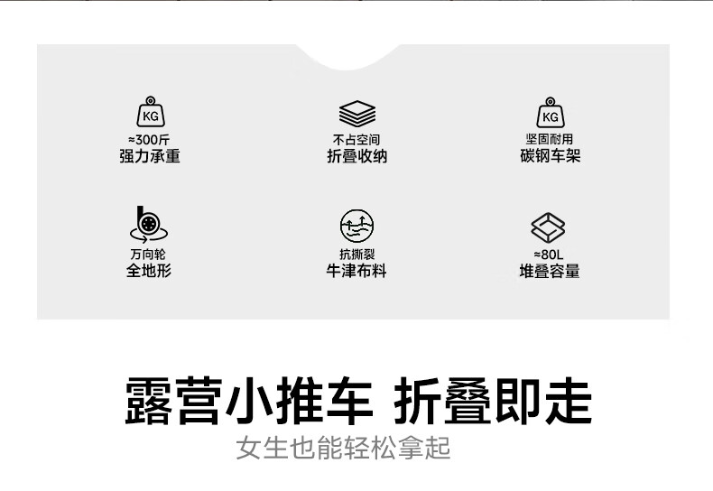 这款户外折叠露营车性价比可以,组装简单,轮子顺滑,拉快递也挺方便。包装完好,物流按时送达,整体符合预期。