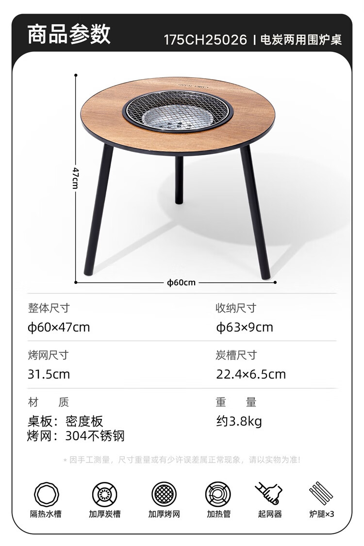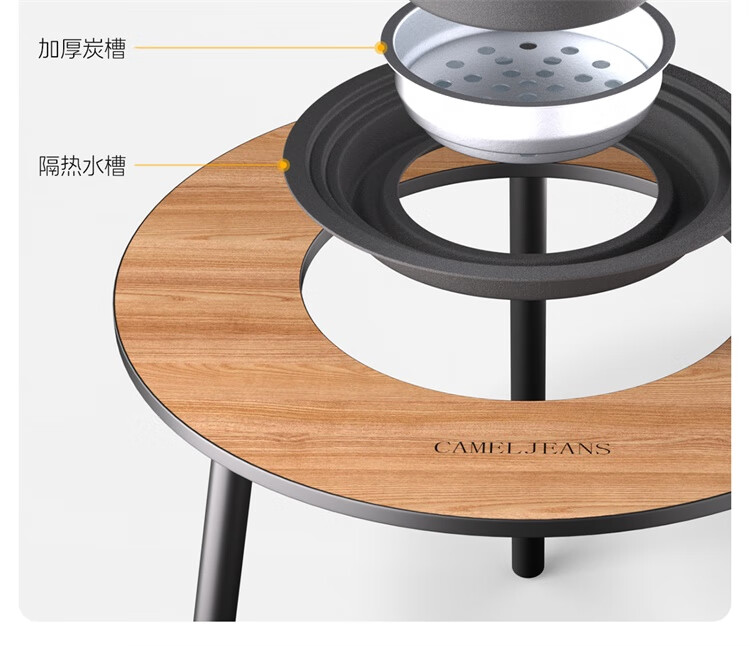 骆驼(CAMEL)JEANS围炉煮茶炉全套烤火炉火盆烧烤架桌户外炭炉家用室内 【喜喜】木纹色围炉桌_稳固加粗