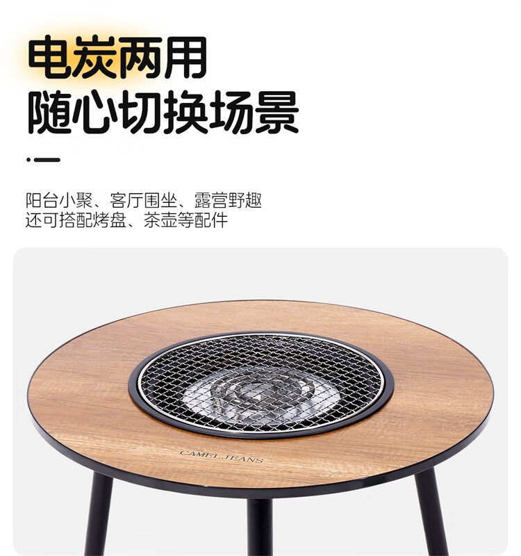 CAMELJEANS围炉煮茶桌电碳两用烤奶烧烤炉家用户外露营烤火炉套装 单炉+烤盘