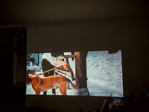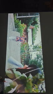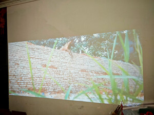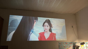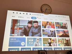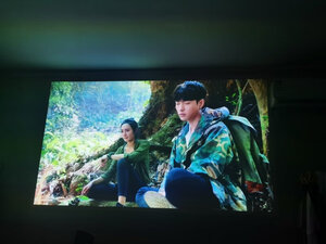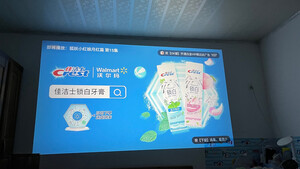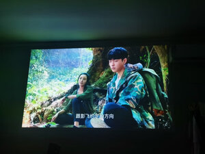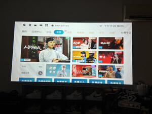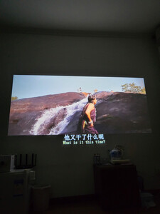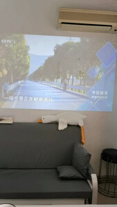 中午拍的,清晰度和亮度都不错。超出我的预期。对焦需要手动调节,近场投,画面足够大。试了下手动矫正和内置的系统,有芒t果,可以下载央视,不过都要交费才能自由看。