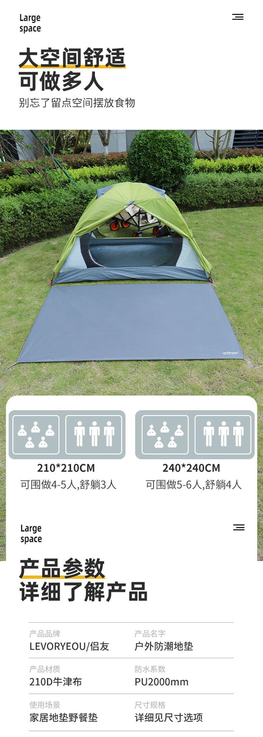 侣友(LEVORYEOU) 户外地席露营地垫加厚防水耐磨野餐垫牛津布防潮六边角地布地席 牛津地席:210X180cm