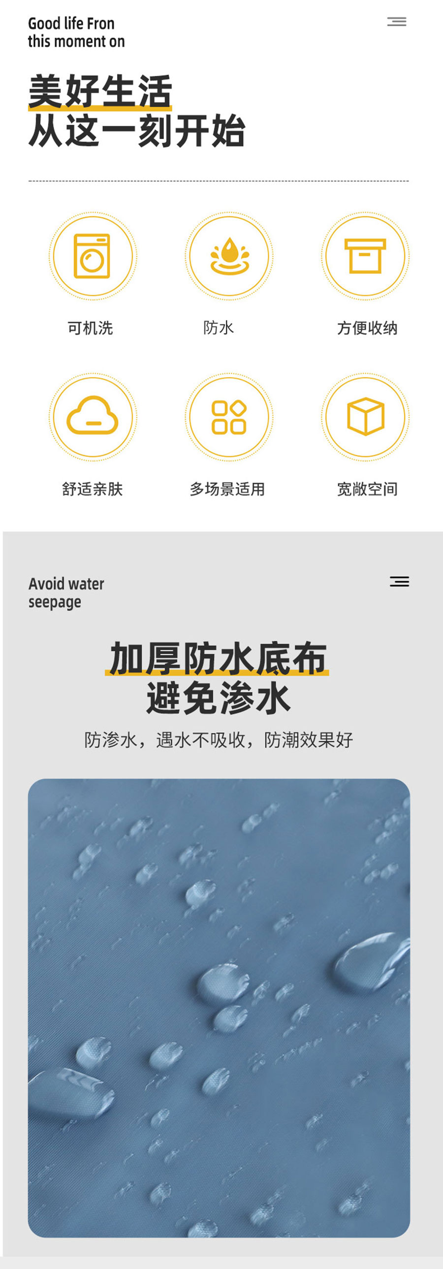 防水效果:很防水!喜欢, 适用场景:野炊,很适合,会介绍给朋友 同事买的! 容纳人数:7。8人坐一起应该问题不大! 透气效果:应该不透气,毕竟是防水的?