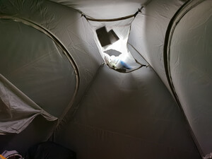 帐篷设计的非常细节,各种储物空间也是很合理,尤其是帐篷顶上的网兜,设计了两个独立的口袋,中间留出的空隙刚好可以将露营灯穿出,不影响光线照射,特别赞!不愧是专业的户外品牌,配套的产品也是性价比极高,会多多回购的