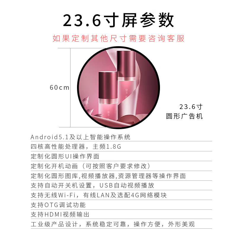 anzihey圆形广告机23.6英寸壁挂广告屏美妆首饰店科技博物馆方形个性创意异形液晶触摸显示屏幕 圆形屏定制方案