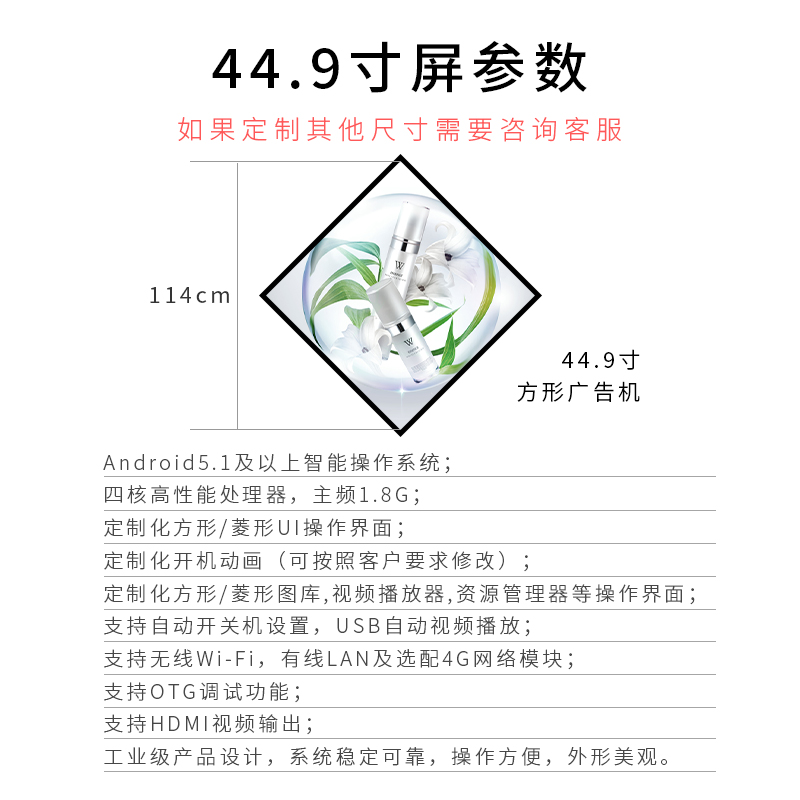 Anzihey 22/33.2寸方形广告机方形显示器可菱形显示美妆首饰店科技博物馆个性创意异形屏幕 方形广告机(定制金)