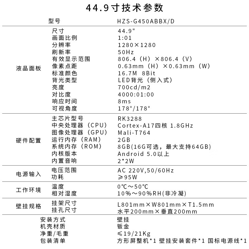 圆形屏*1、壁挂安装套件*1、国标电源线*1