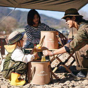 NatureHike挪客户外折叠水桶便携露营储水桶大容量食品级水盆野外野营打水桶 升级款/奶白-10L