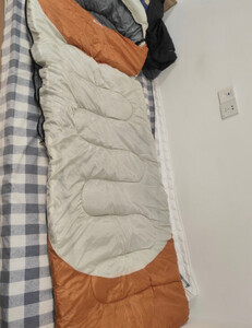 睡袋面料涤纶布材质,中空棉填充,保暖效果很好,铺盖舒适,承重量适中,体积容量很大,夜间覆盖全身压身轻松很暖和,价格低廉性价比很高,点赞五星好评。