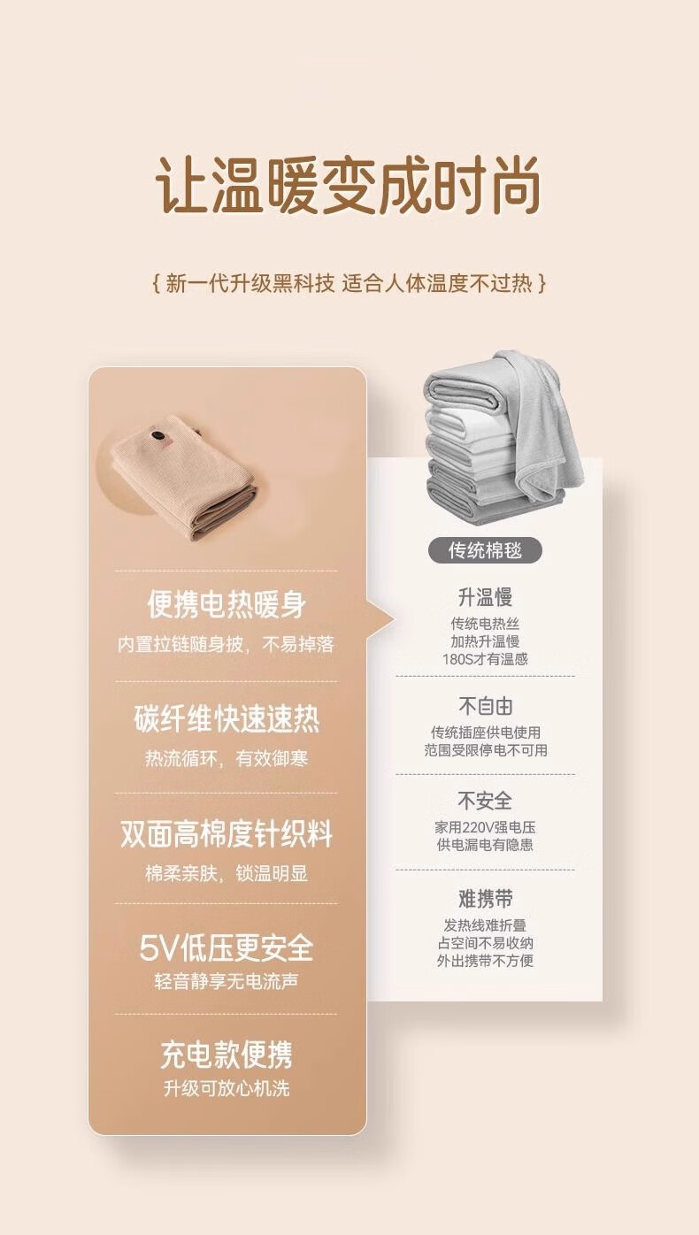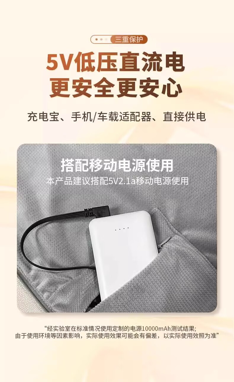 旅行时带着这个太方便了,插上充电宝就能用,保暖效果不错,轻便不占地方。