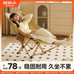 原始人户外折叠躺椅便携式超轻钓鱼椅子沙滩露营导演椅靠背凳子 卡其【网纱脚托款】清凉透气