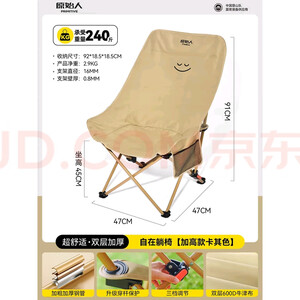 原始人户外折叠椅便携式钓鱼椅月亮椅野餐躺椅懒人椅休闲椅露营椅子 双人出游四【两椅一箱】