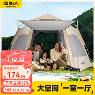 原始人帐篷户外便携式折叠野外露营装备全套儿童野餐野营全自动加厚防雨 【一室一厅】杏米白大号
