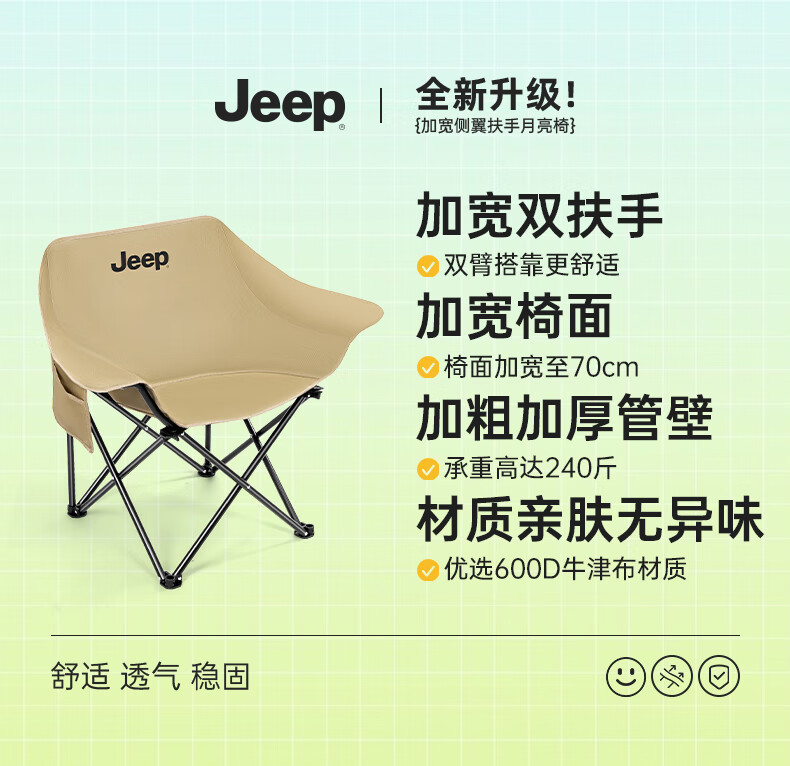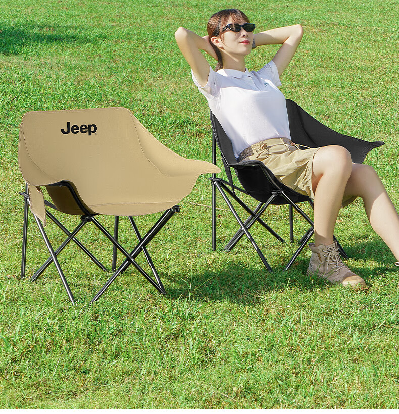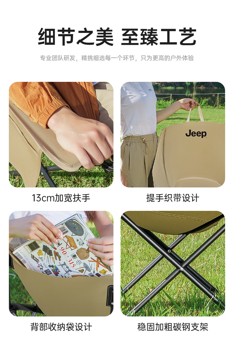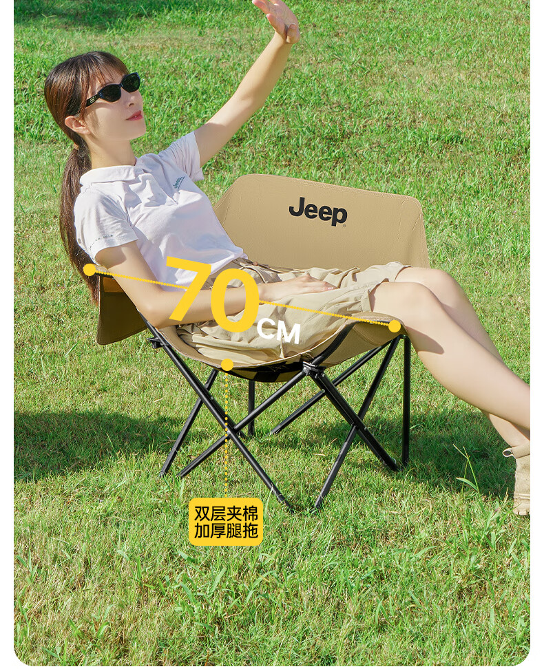 JEEP折叠椅户外露营便携靠背钓鱼椅折叠椅懒人椅家庭休闲带扶手月亮椅 扶手月亮椅细沙黄