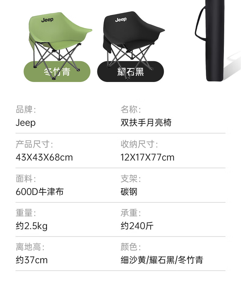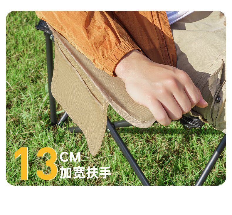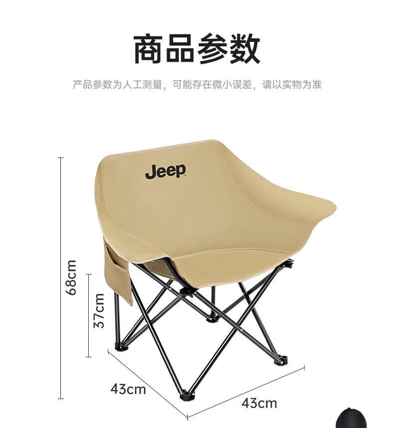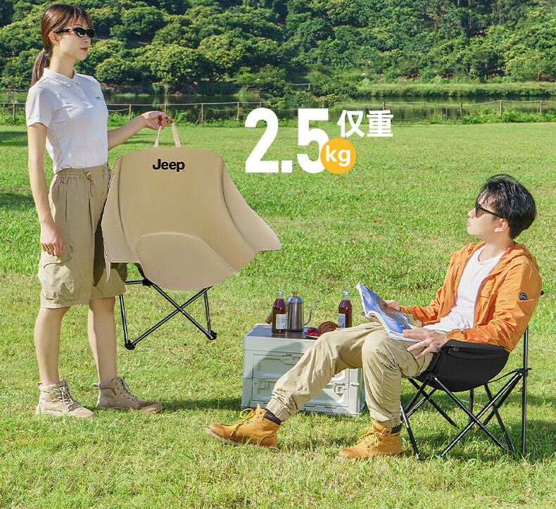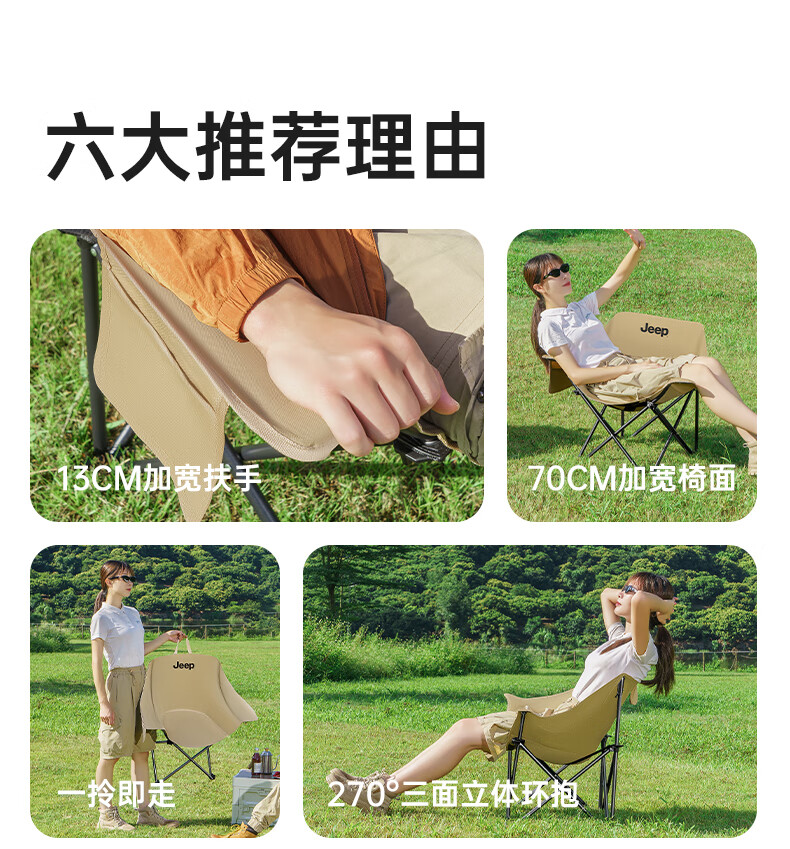 JEEP折叠椅户外露营便携靠背钓鱼椅折叠椅懒人椅家庭休闲带扶手月亮椅 扶手月亮椅细沙黄