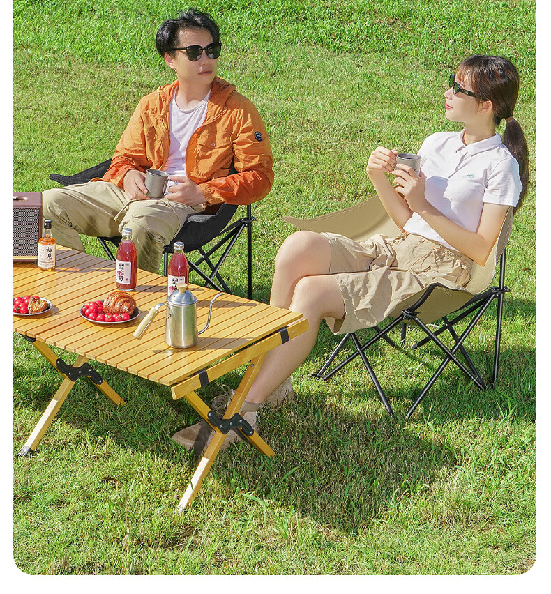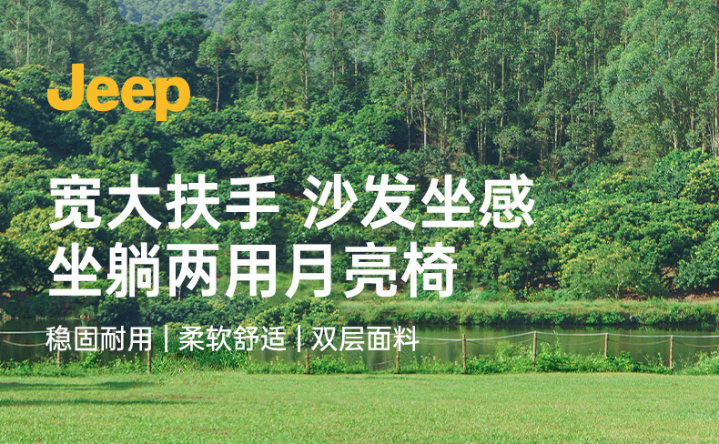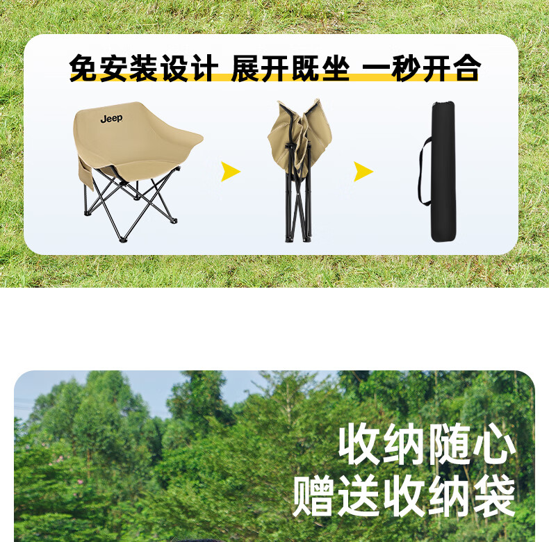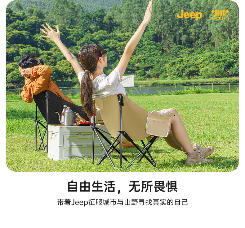 JEEP月亮椅露营椅子户外折叠椅便携式躺椅钓鱼凳沙滩椅野餐桌椅 可调节高背月亮椅【细沙黄】