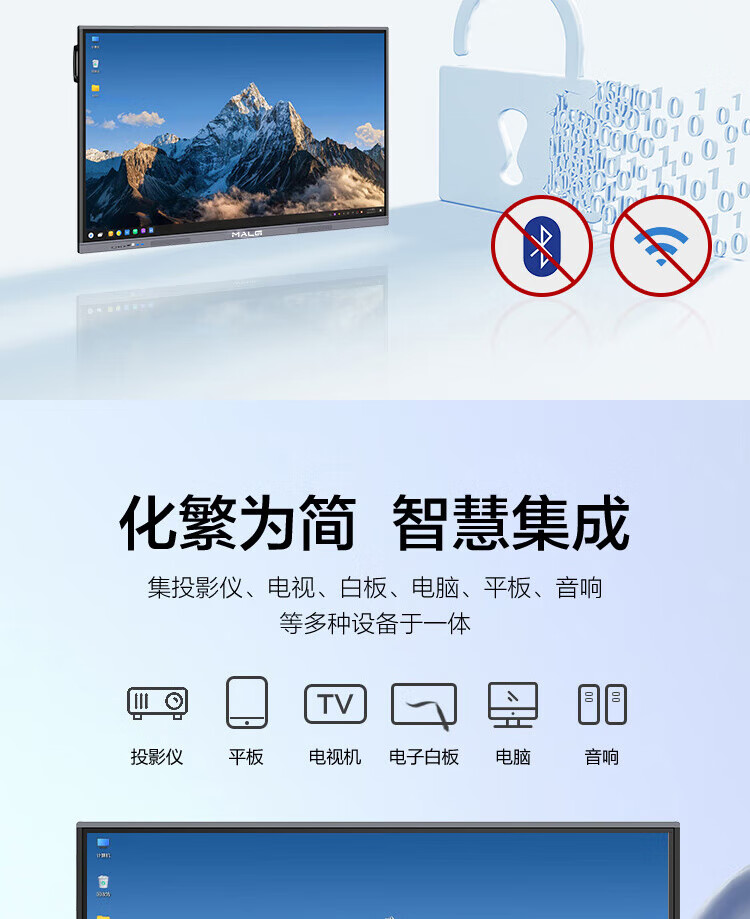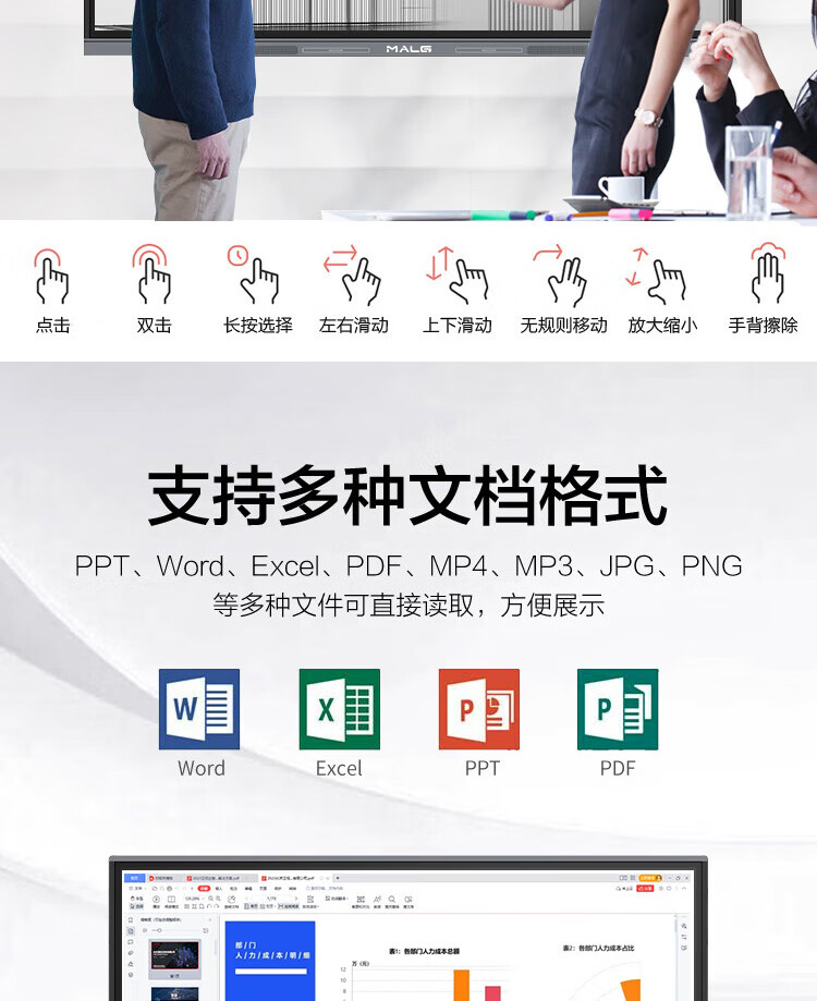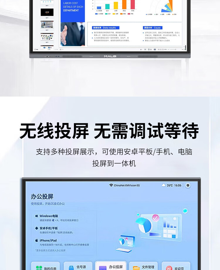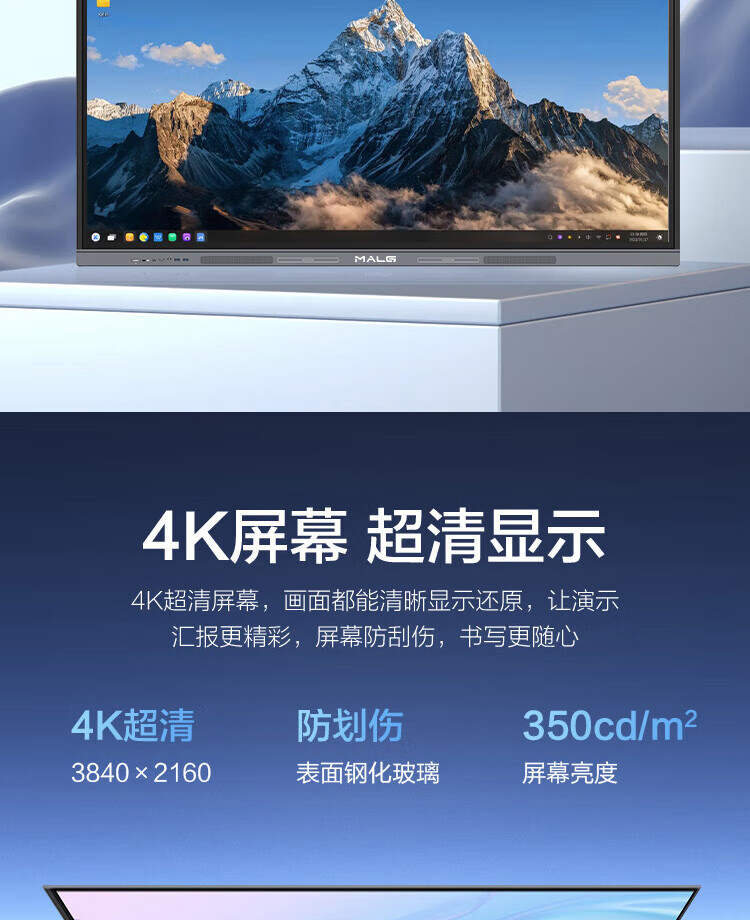 MALG120英寸触控会议平板一体机4K超高清电子白板商用大屏130/150巨幕液晶显示器多媒体交互式智慧投屏触摸电视机 150DQ双系统i7【2米6巨幕屏】免费安装