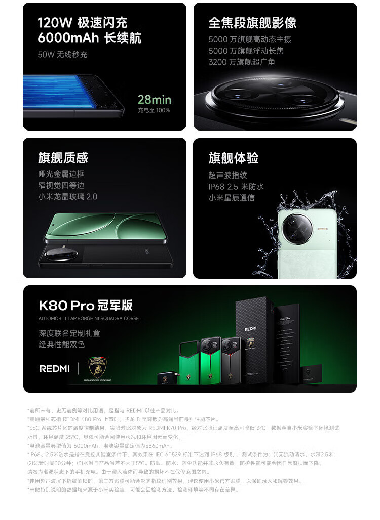 小米红米K80Pro/K80【24期免息】5G新品 骁龙8至尊版 IP68防尘防水6000mAh大电池120W快充 游戏手机 玄夜黑16GB+512GB【K80】 官方标配【赠2年店铺延保+90天碎屏保】