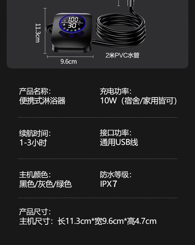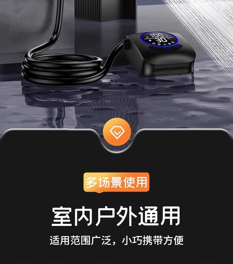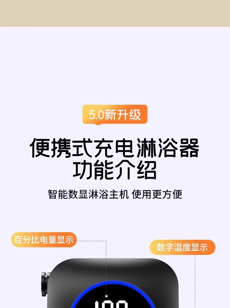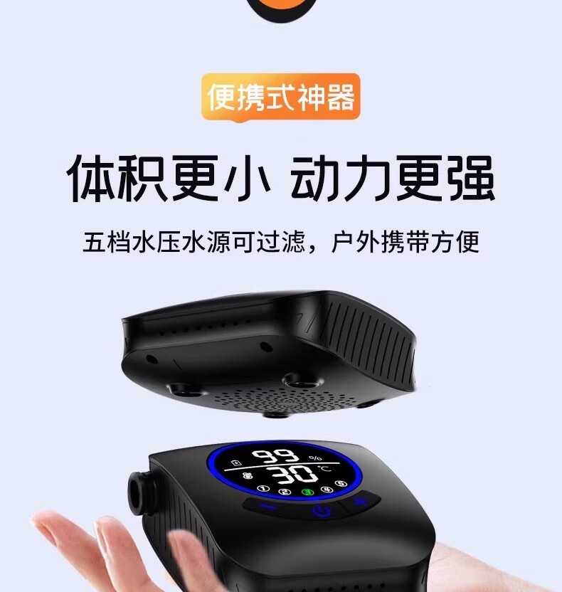 京物户外洗澡神器无线花洒洗澡神器自吸宿舍简易移动淋浴器带水泵露营 Y5顶配款【9600毫安+三档调节+全屏数显】 超强续航 安全耐用