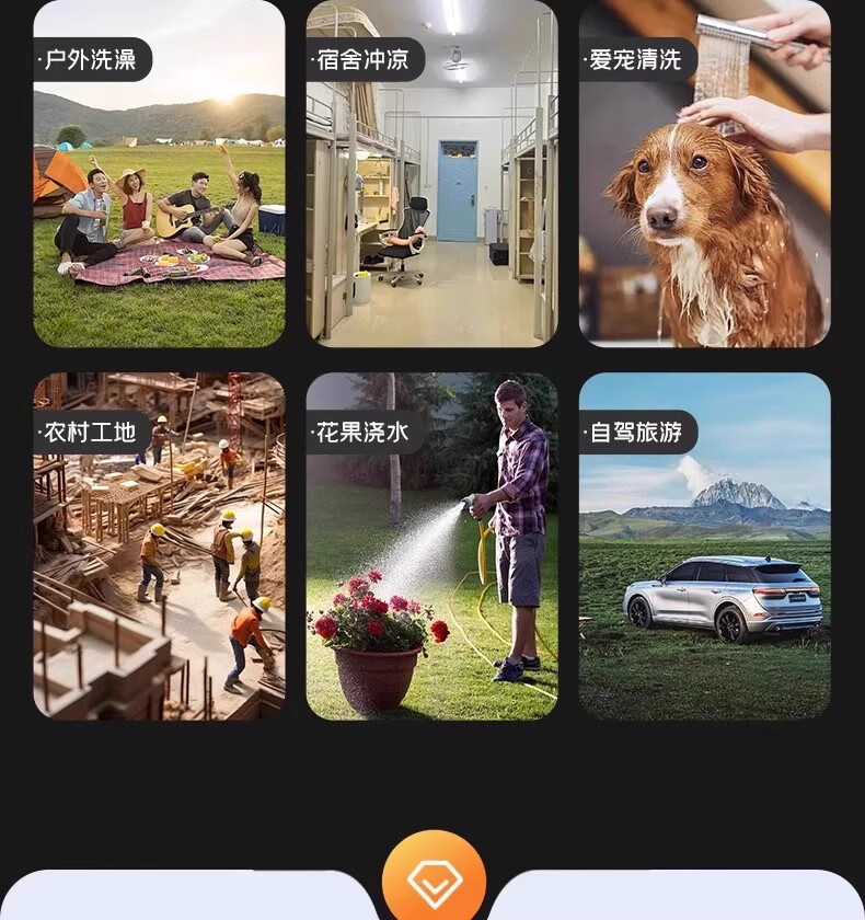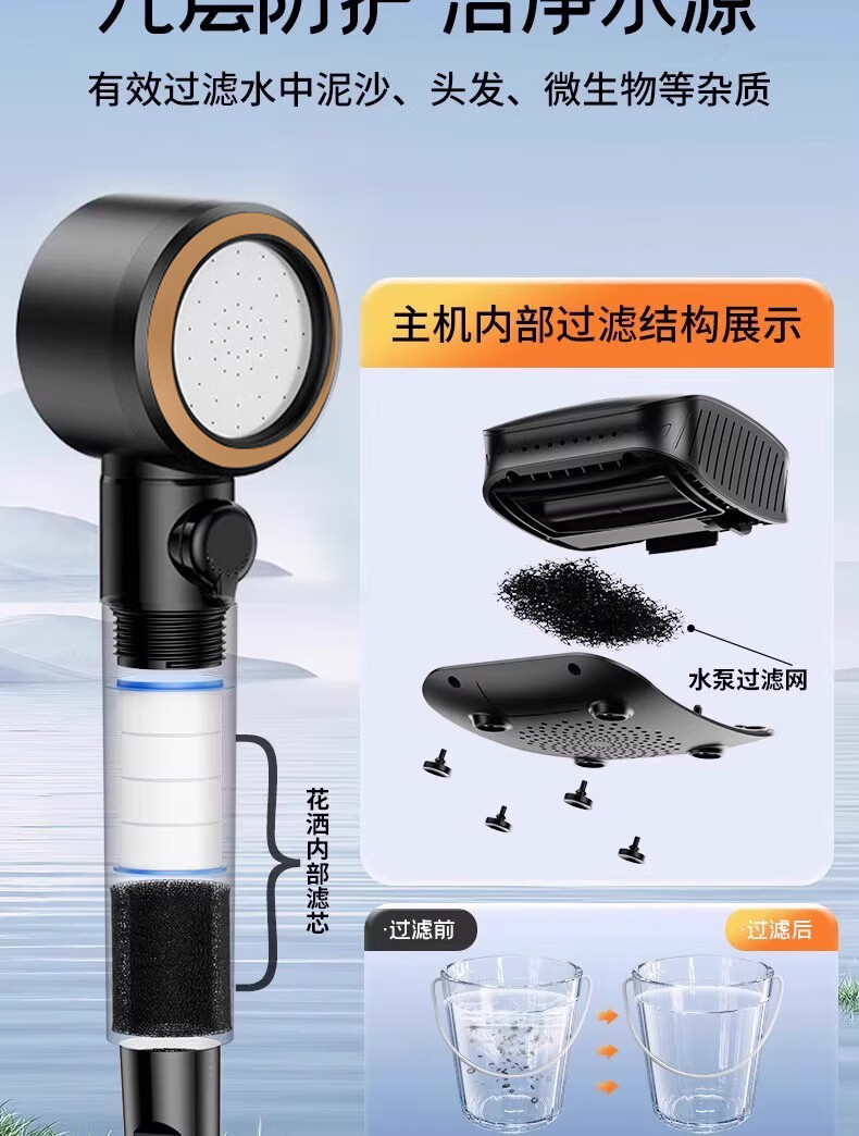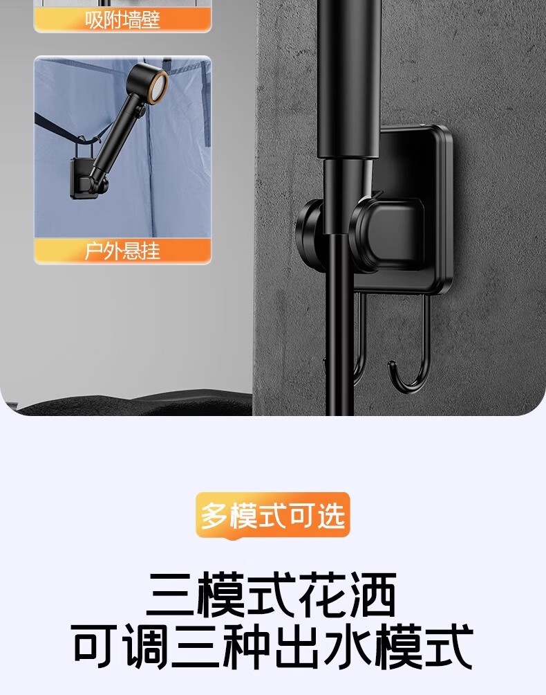 试了新买的这款,出水压力蛮大,送了花洒带吸盘的支架和收纳箱,可以用来固定花洒 ,带着出门游玩之类的也很方便 总之蛮贴心的