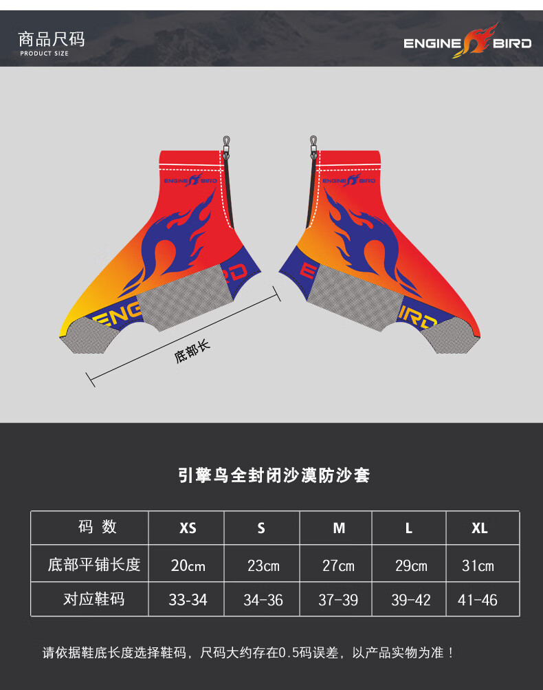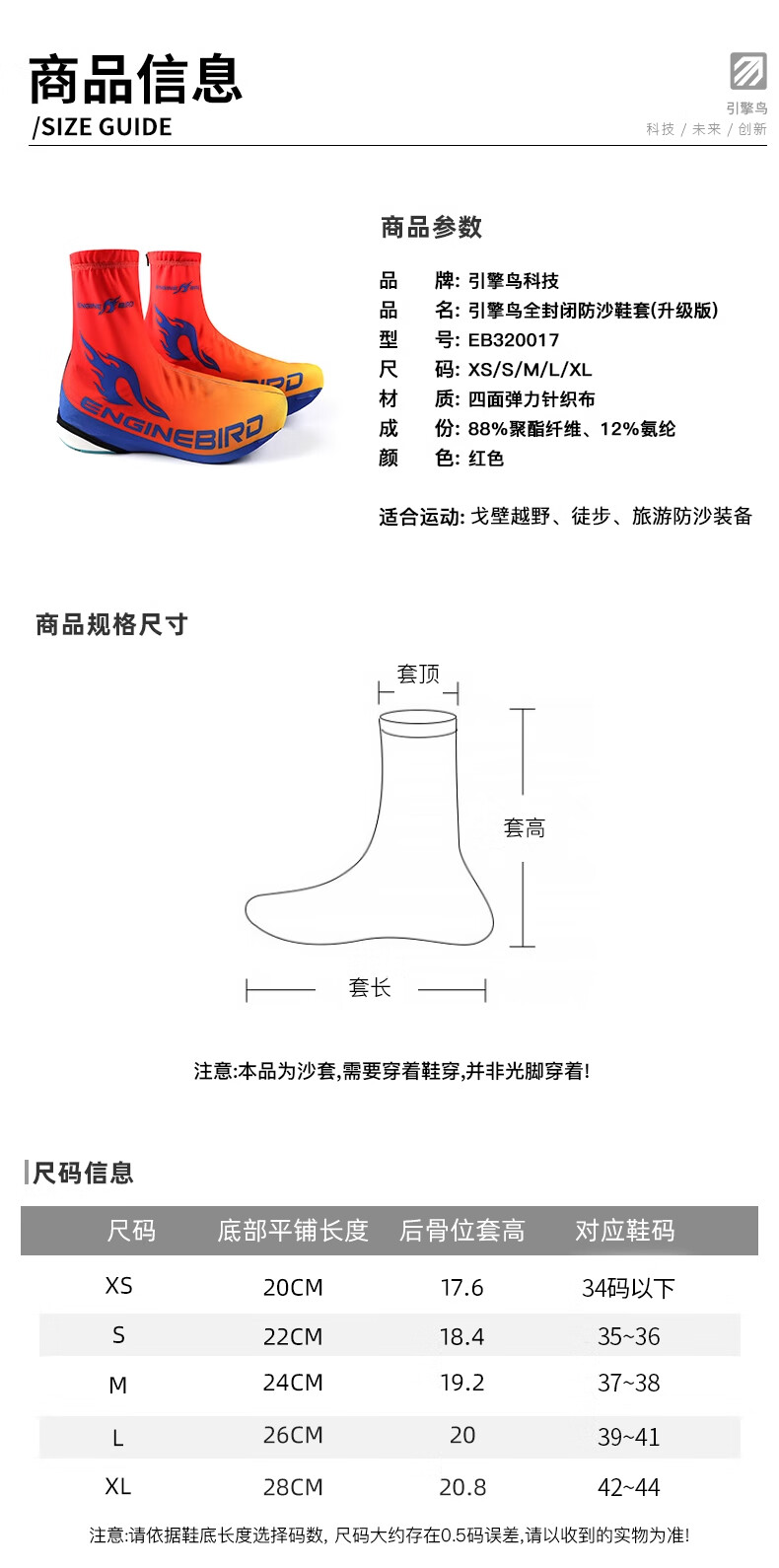 引擎鸟户外防沙鞋套男女登山徒步越野跑脚套沙漠戈壁旅游配饰装备 红色 L