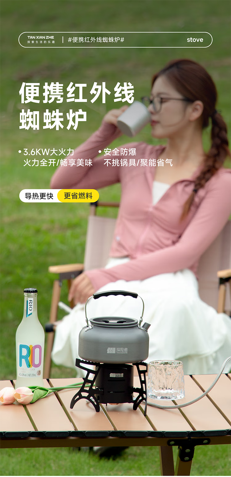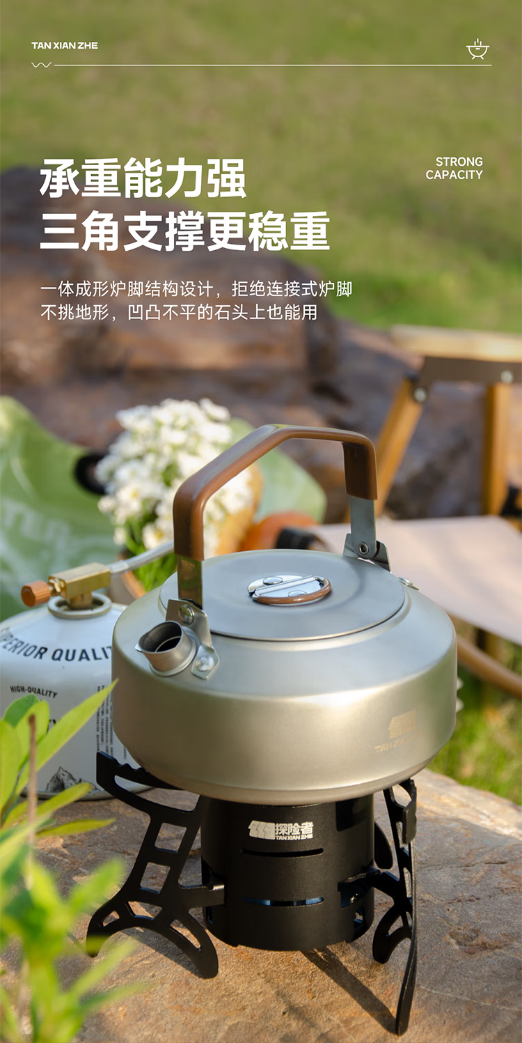 探险者(TAN XIAN ZHE)户外煮茶套装钛茶具钛杯钛水壶便携式旅行茶具户外煮茶烧水一体 1.5L钛水壶+茶具+红外炉+气券*2