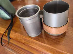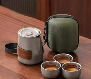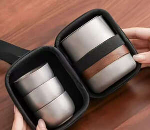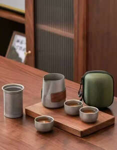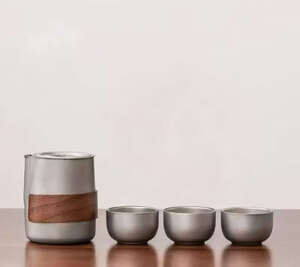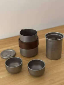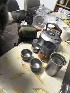 买了这个钛化旅行茶具,拿到手很小巧,泡茶茶漏茶杯壶盖防烫木套,配的很齐全