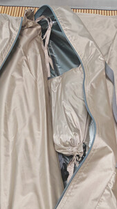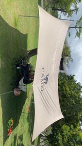改款黑胶天幕的遮光挡热能力不错,第一次使用就遇到太阳晴天,天幕下黑胶涂层有效阻挡了绝大部分紫外线和热量。材质也比较结实。