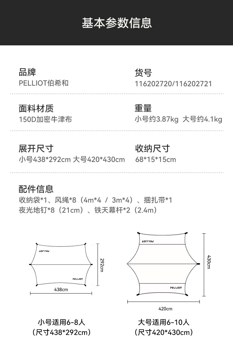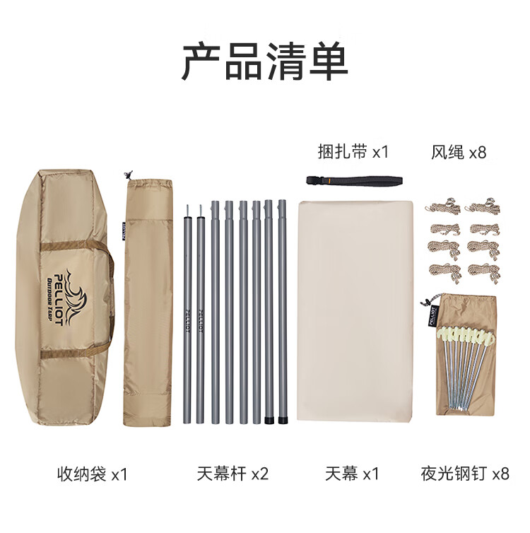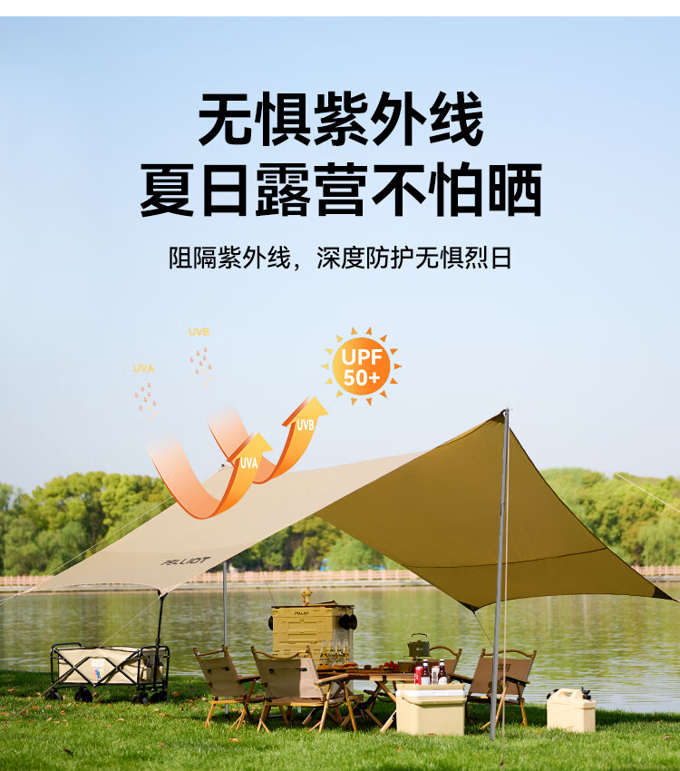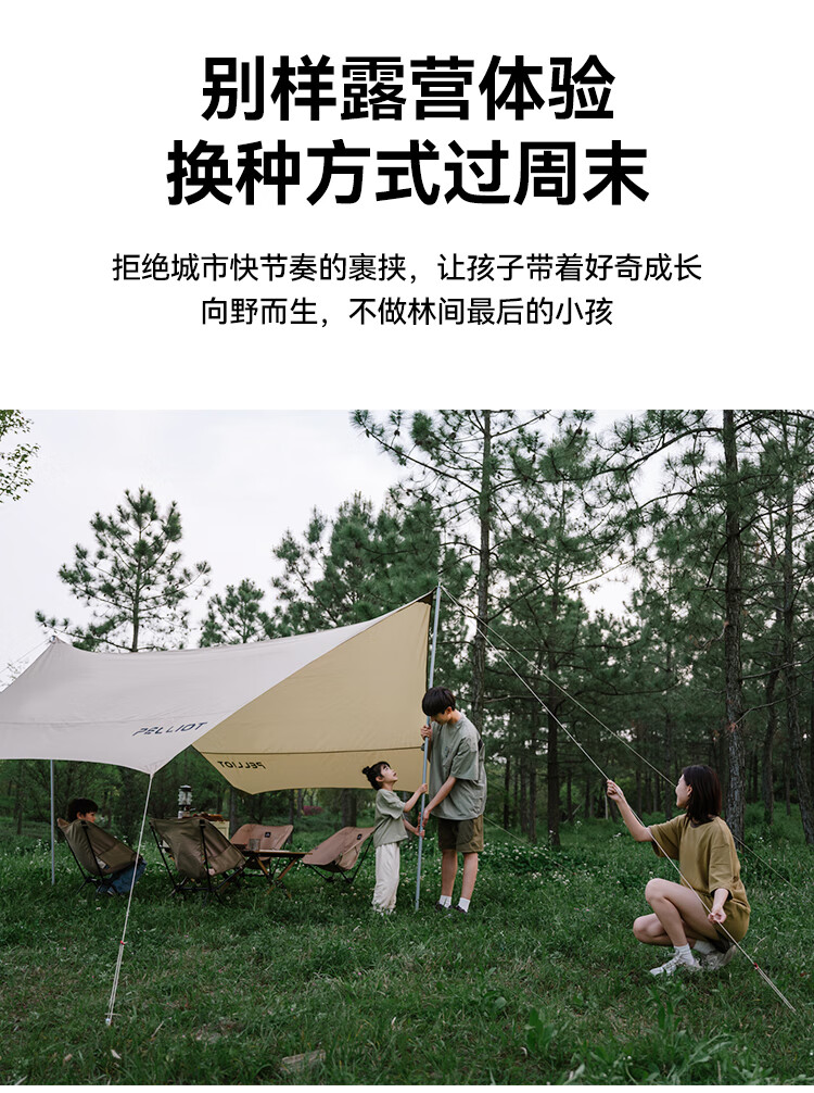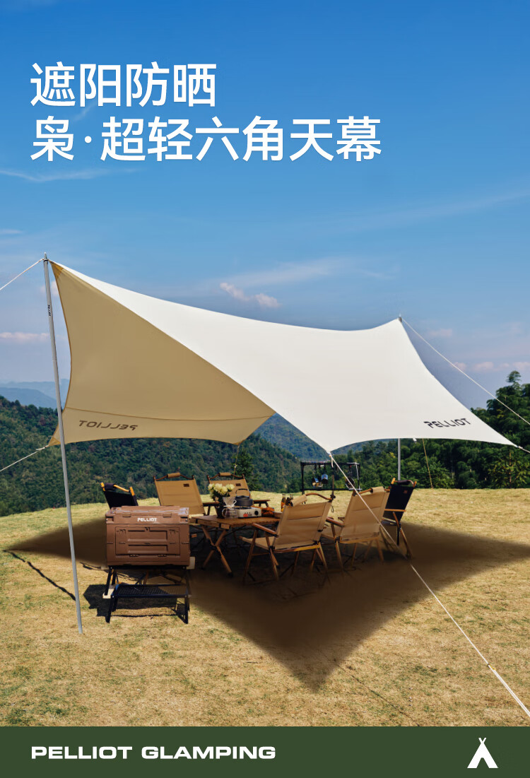伯希和户外天幕帐篷超轻便携露营轻量化遮阳棚超大野营防晒装备 13㎡【卡其色】