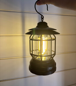 收到有几天了,露营灯颜值很高,旋钮可以无级调节亮度,上面还带有挂钩,感觉挺不错的,还没拿出去露营使用,估计露营拍照会很出片吧!