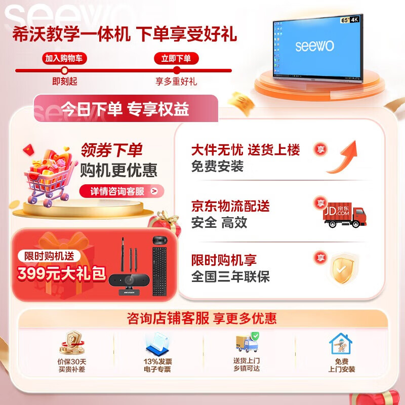 希沃seewo/教学一体机65寸75寸86寸智能会议平板触摸屏智慧黑板 希沃86英寸+i78G256G+ST33移动