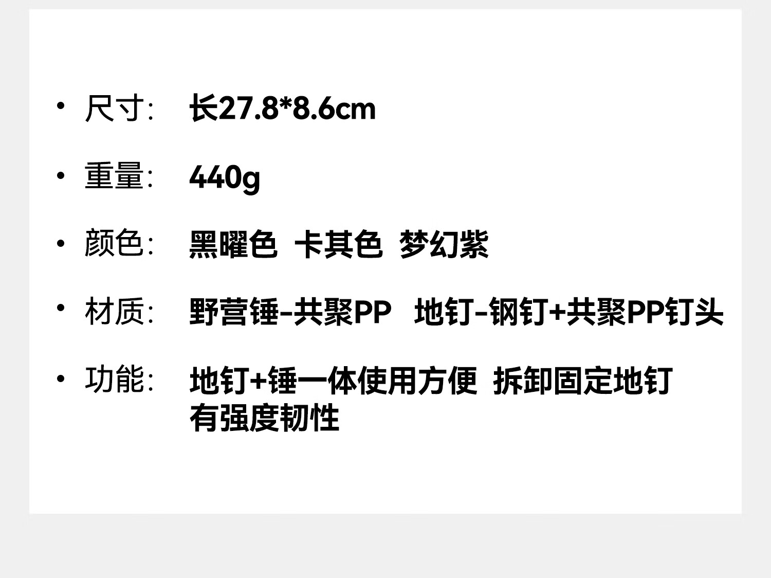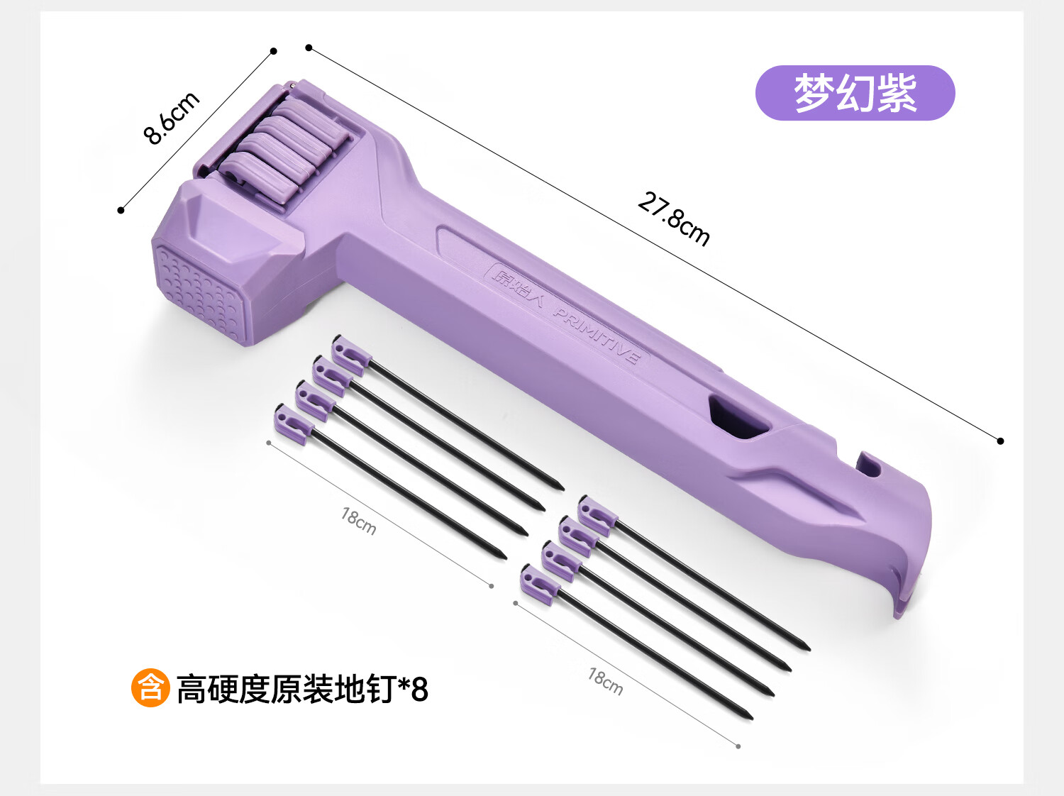 原始人(The Primitive)户外地钉锤子多功能轻便携露营工具帐篷天幕锤子求生榔头野营装备 紫色-可容纳8根地钉