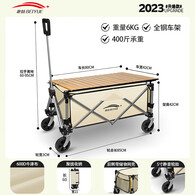 北岳露营推车可折叠户外手推野餐车营地拖车拉杆小拉车桌板烧烤野营车 【桌板套餐】便携款-白+木纹桌板