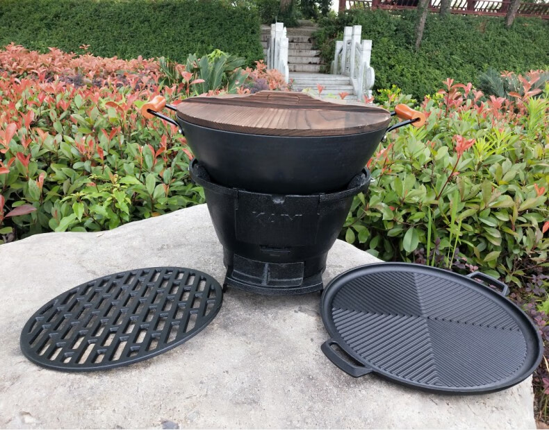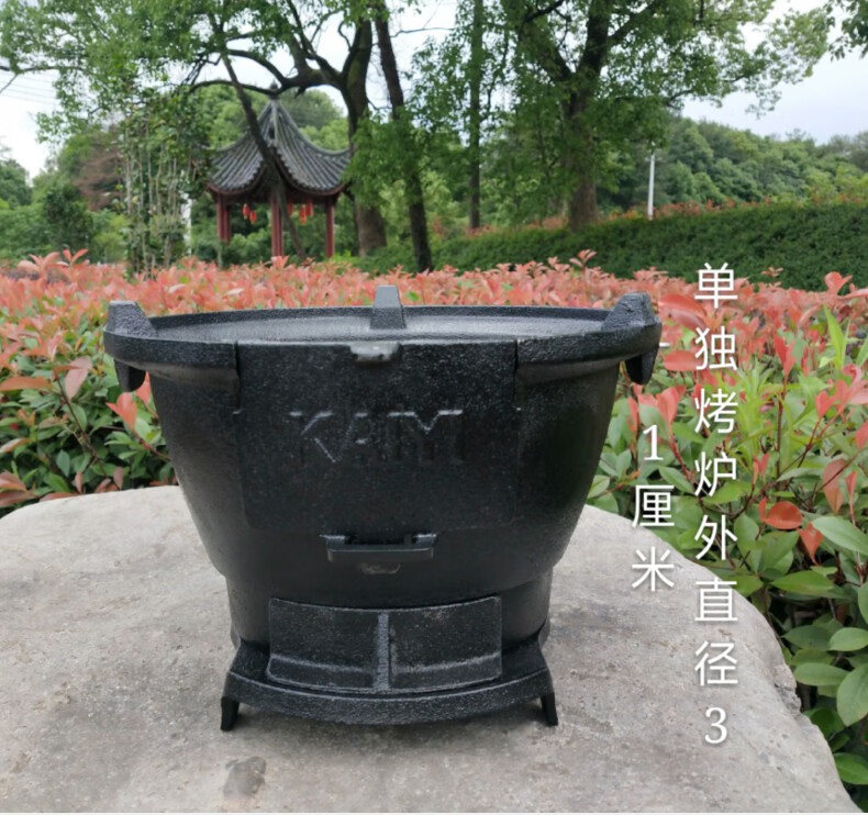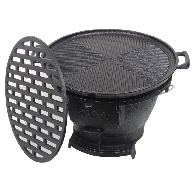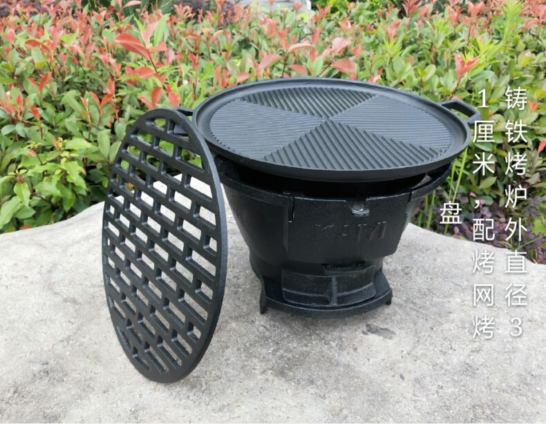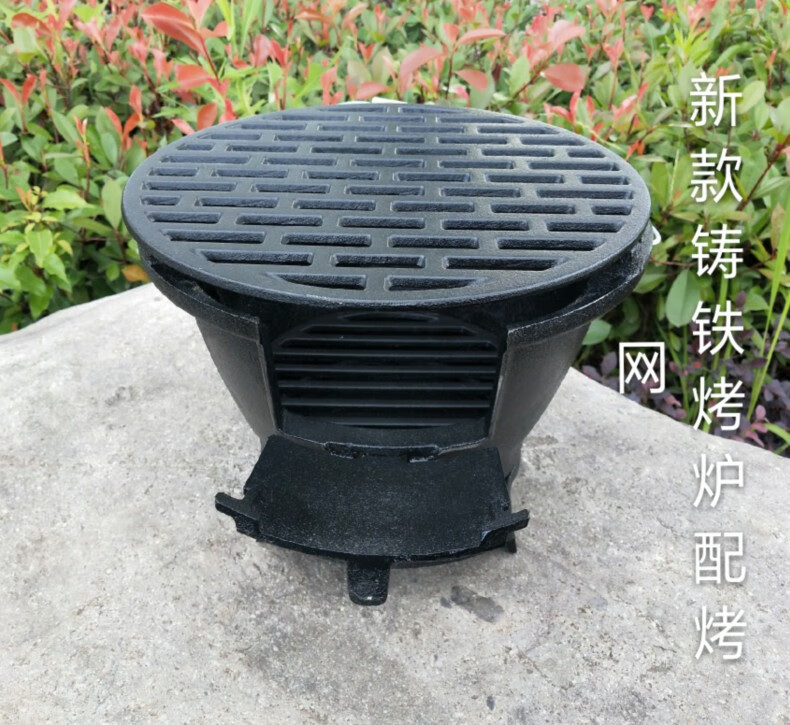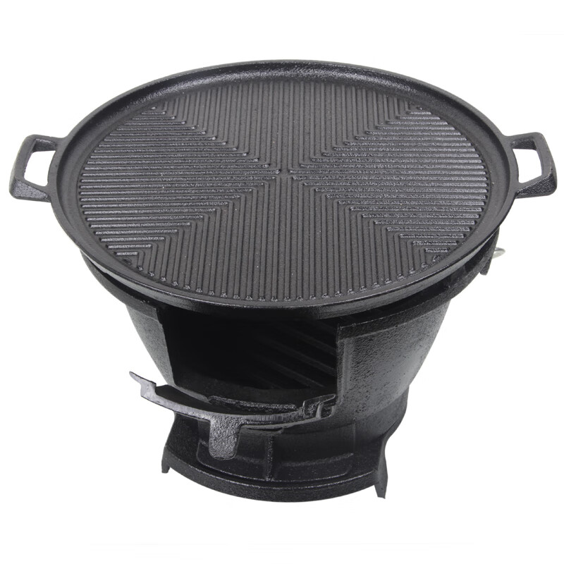 妙普乐户外烧烤炉铸铁取暖炉家用加厚烤肉盘火锅炉木炭生铁烤火炉 黑色单炉烤炉31厘米