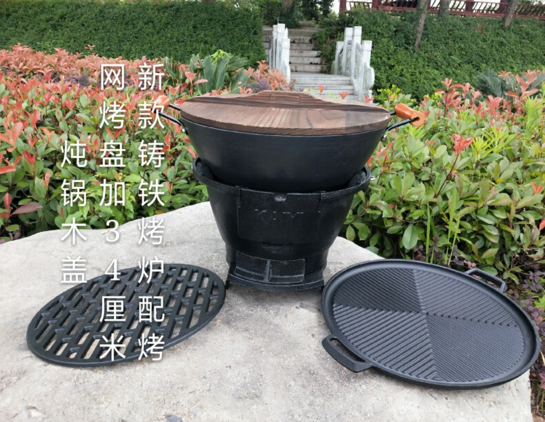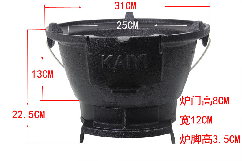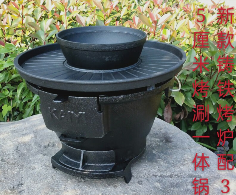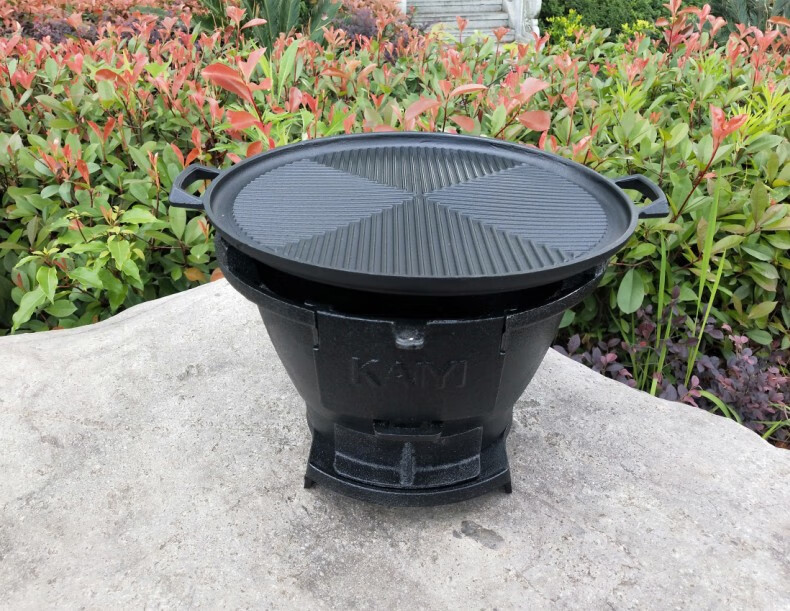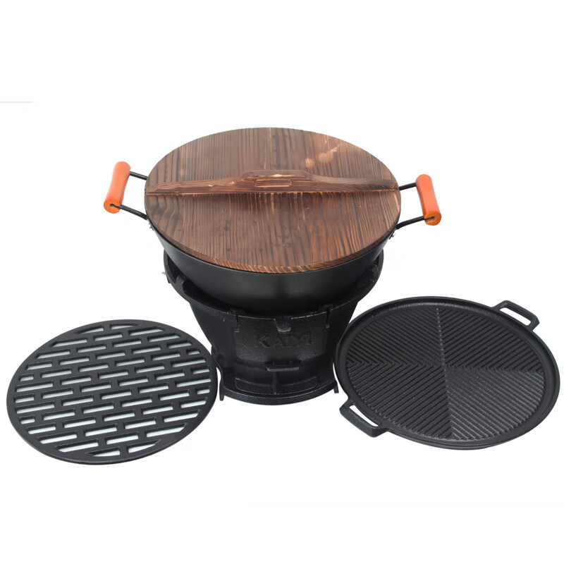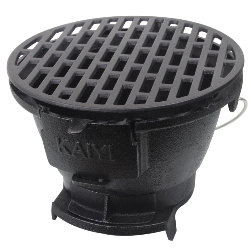妙普乐户外烧烤炉铸铁取暖炉家用加厚烤肉盘火锅炉木炭生铁烤火炉 黑色单炉烤炉31厘米
