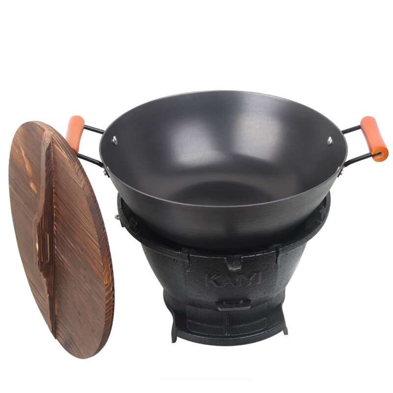 创京懿选柴火灶用烧木柴农村无烟取暖炉子室内移动烤箱大添柴口锅台 大号泰钢+炉圈炉盖
