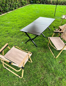 北乐户外折便携式露营蛋卷桌椅套装野餐野炊营桌子摆摊烧烤可折叠椅 【木纹色150cm】蛋卷桌+大号椅*4