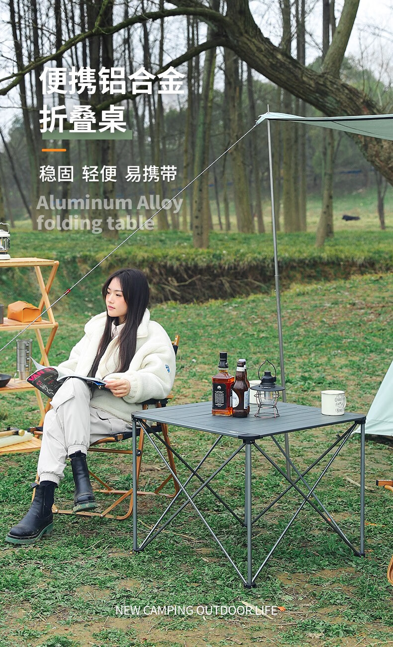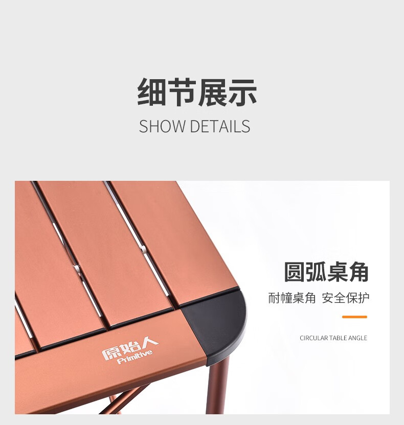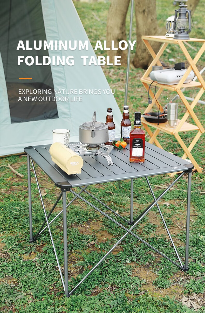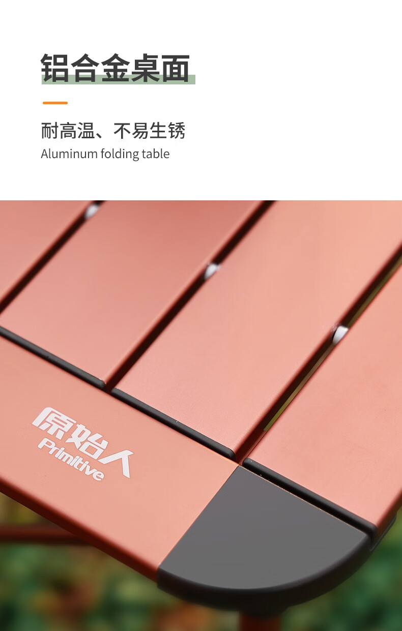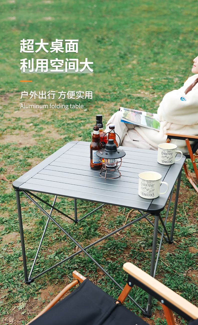 原始人折叠桌户外野餐露营铝合金桌子便携式野餐蛋卷桌椅野外用品装备 铝合金折叠桌大号-钛灰