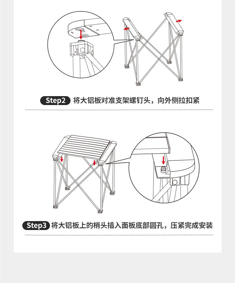 桌子牢固,支撑后高度很合适,收纳方便,收纳后体积不大,方便携带,适合户外野餐露营,值得信赖。