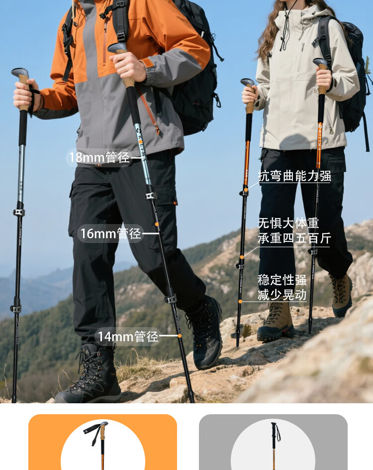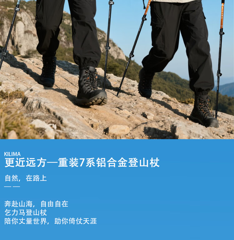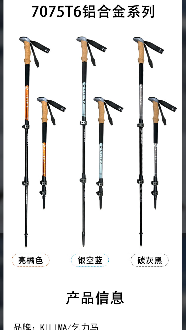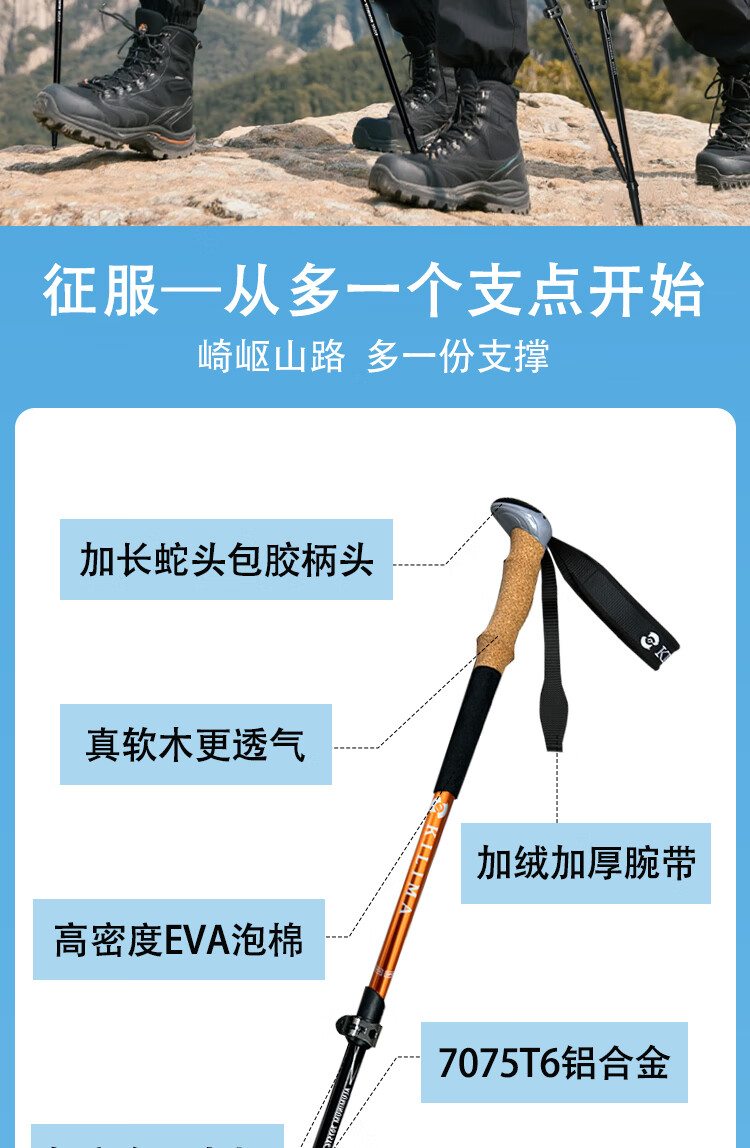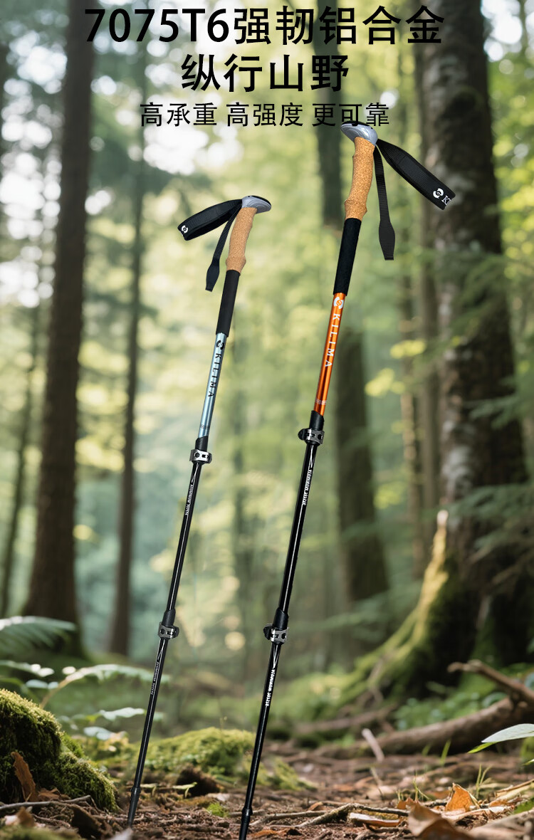KILIMA登山杖重装金属伸缩款软木男女雪山徒步便携装备拐杖户外 L06亮橘色一根