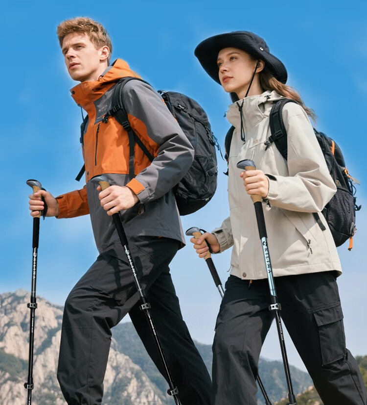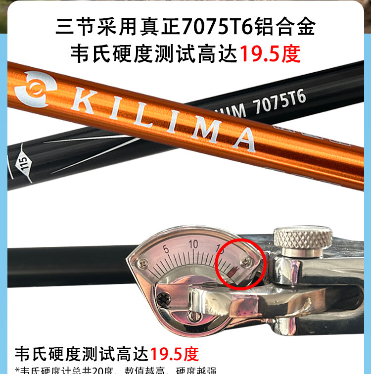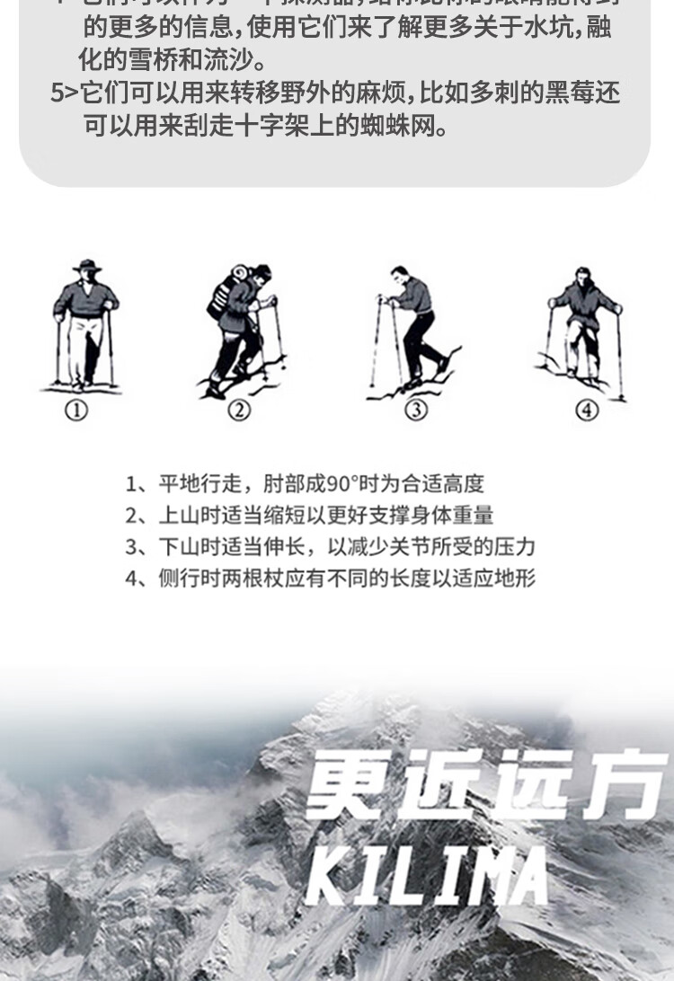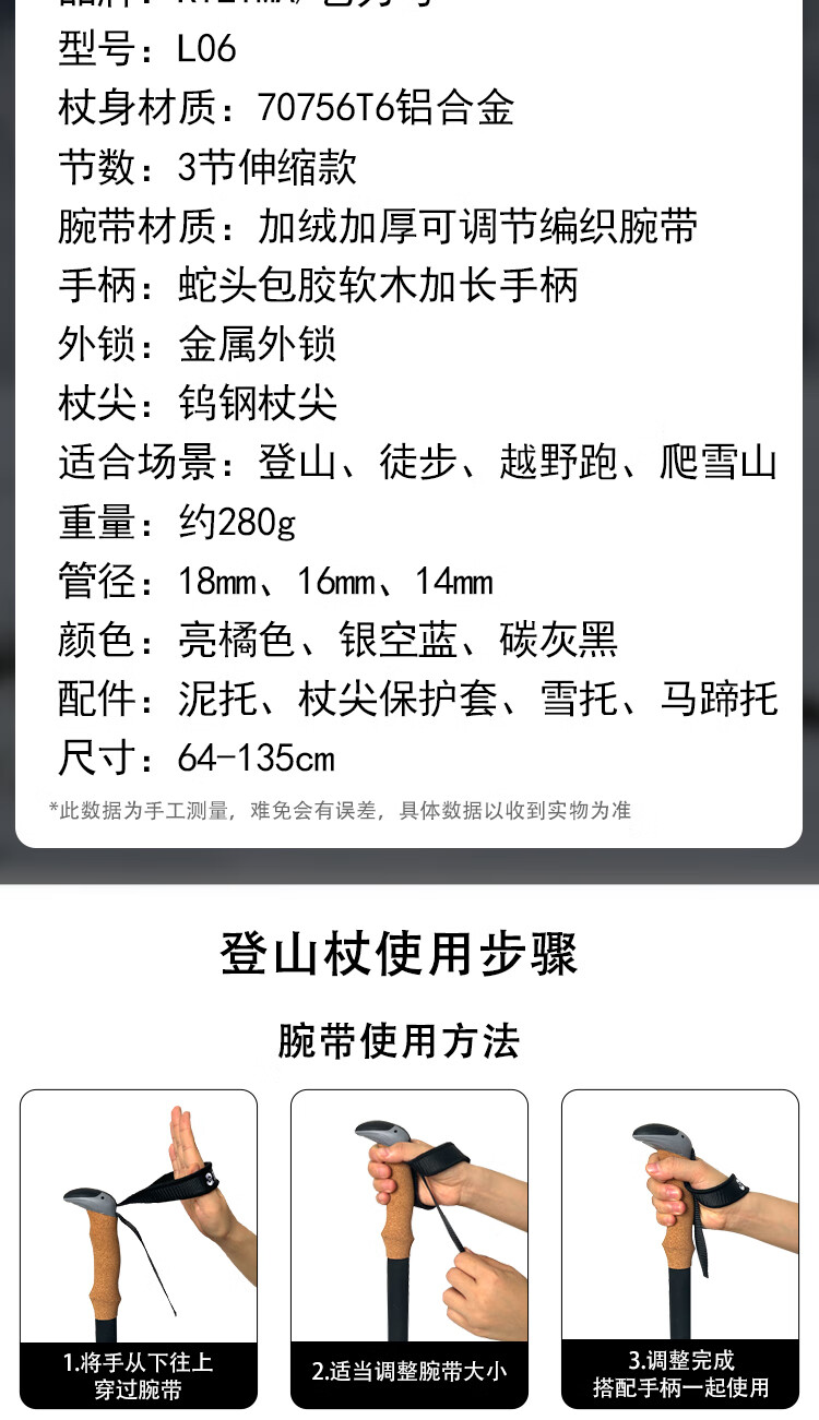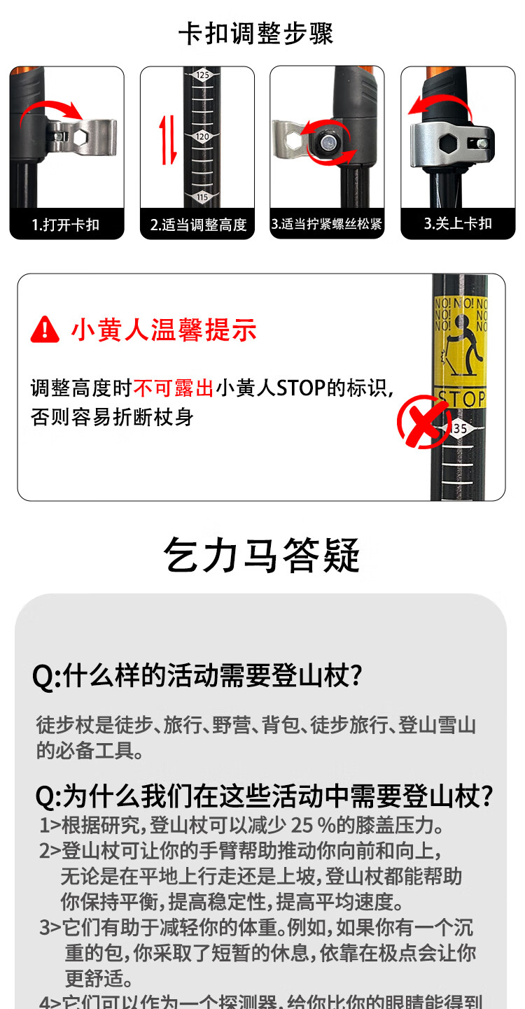 KILIMA登山杖重装金属伸缩款软木男女雪山徒步便携装备拐杖户外 L06亮橘色一根