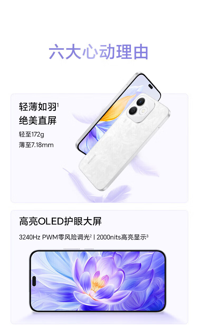 荣耀X60i 轻薄长续航 OLED护眼大屏 IP64整机防水 新款 5G 智能手机 月影白 12GB+256GB