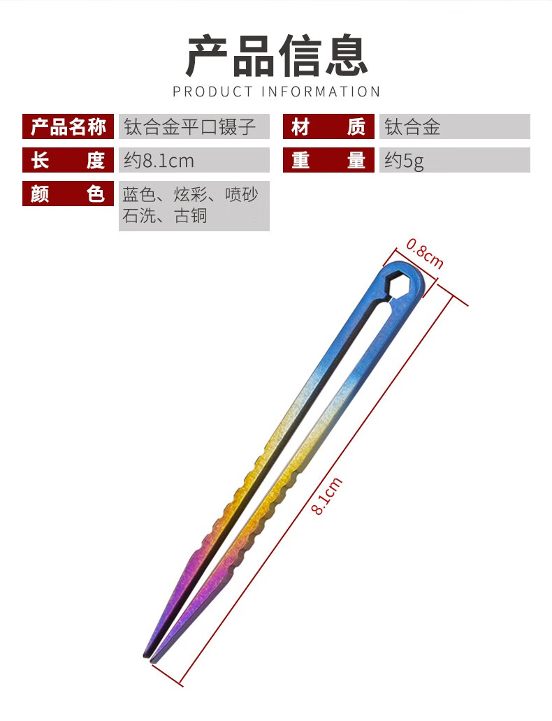 钛途(TITO TITANIUM)钛合金镊子户外EDC小工具平口金属镊子夹子TC4钛合金材质 钛合金镊子-炫彩